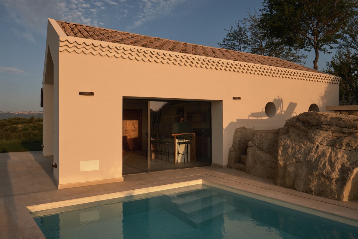Una tenuta di 8 ettari, una Villa privata con piscina privata (riscaldabile da Aprile ad Ottobre con un supplemento giornaliero), scavata nel tufo fronte mare. 1 camera matrimoniale con possibilità di aggiunta di un lettino bimbi, 1 soppalco con futon matrimoniale, 1 bagno e 2 cucine: una interna, una esterna. Forno a legna, barbecue on request e pergola fiorita. A due passi dal Borgo di Tropea, JATU offre un ampio ventaglio di escursioni sportive e culturali sul territorio.