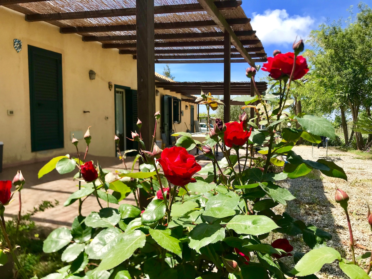 Il Il monolocale è ubicato al piano terra di un antico casale ristrutturato. Dotato di veranda esterna completa di ombrellone, tavolo, sedie e sdraio, di fronte all'alloggio è presente un'area in comune di giardino ben curato con angolo lettura e sdraio, e angolo barbecue, all'interno della struttura si trova anche il posto auto. L'appartamento di 20 mq è composto da camera matrimoniale e angolo cottura unico ambiente e bagno indipendente con box doccia.