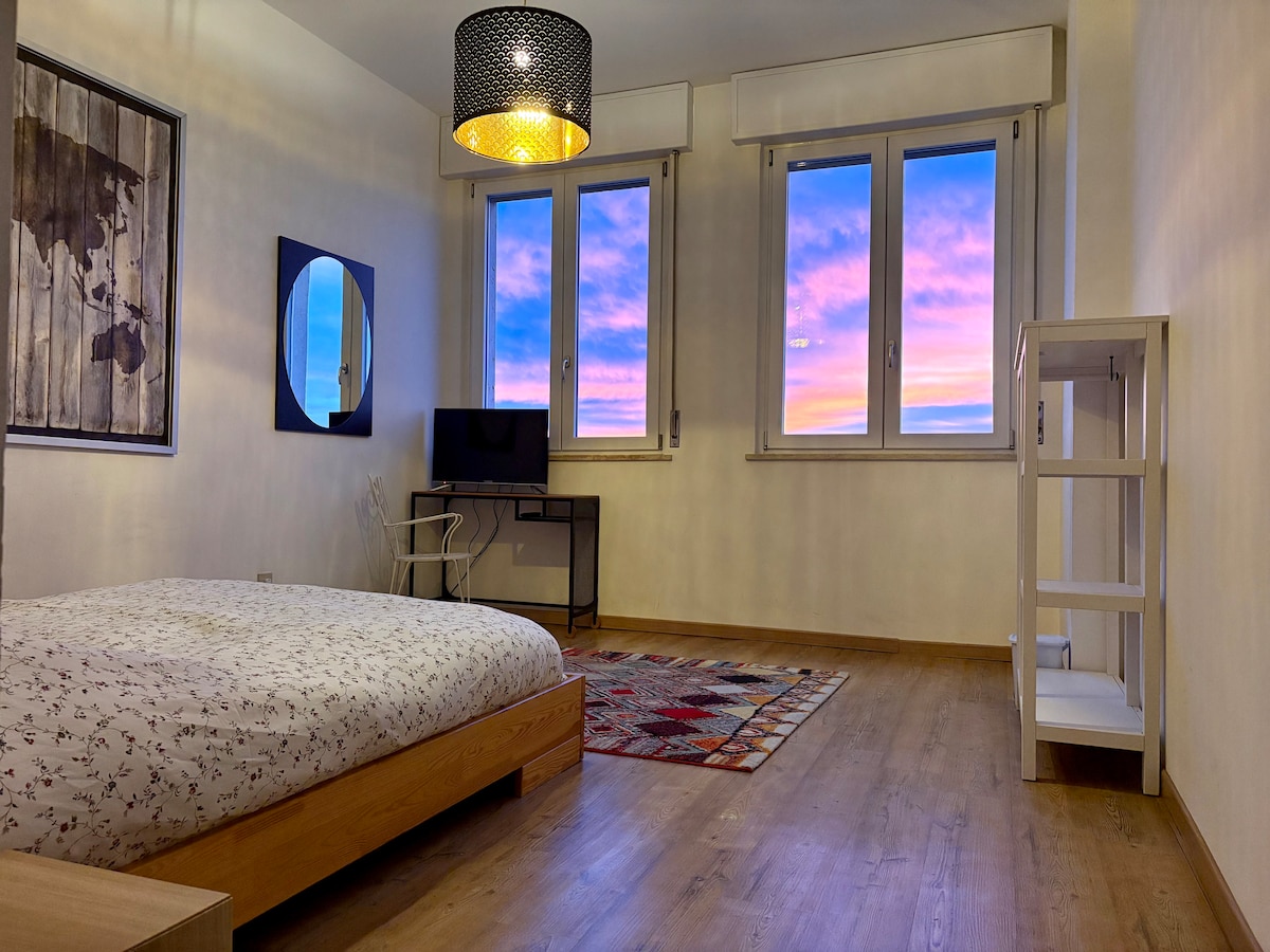 Enjoy the best of Vicenza in this luxurious, newly-renovated home in the historic center. Apartment includes autonomous heat and cooling, a private bathroom, large TV with streaming apps included, mini-fridge, coffeemaker. Desk, office chair, and super-fast Wi-Fi included. Sleep comfortably in a Queen-size bed for 2, just a 5-minute walk to the Basilica Palladiana and the Piazza dei Signori. Public parking nearby.