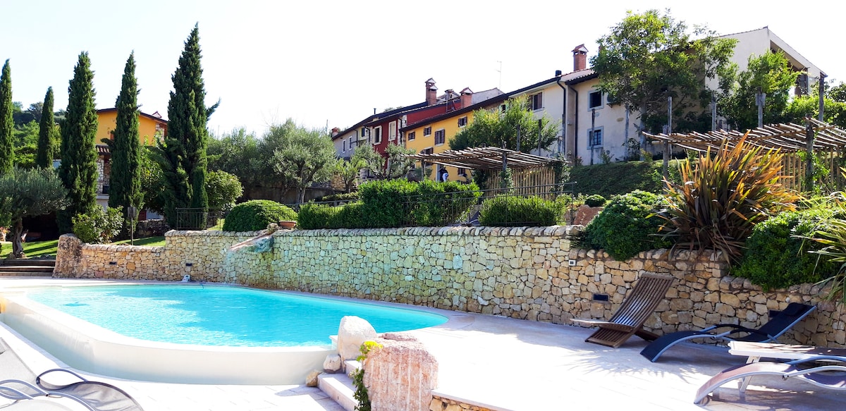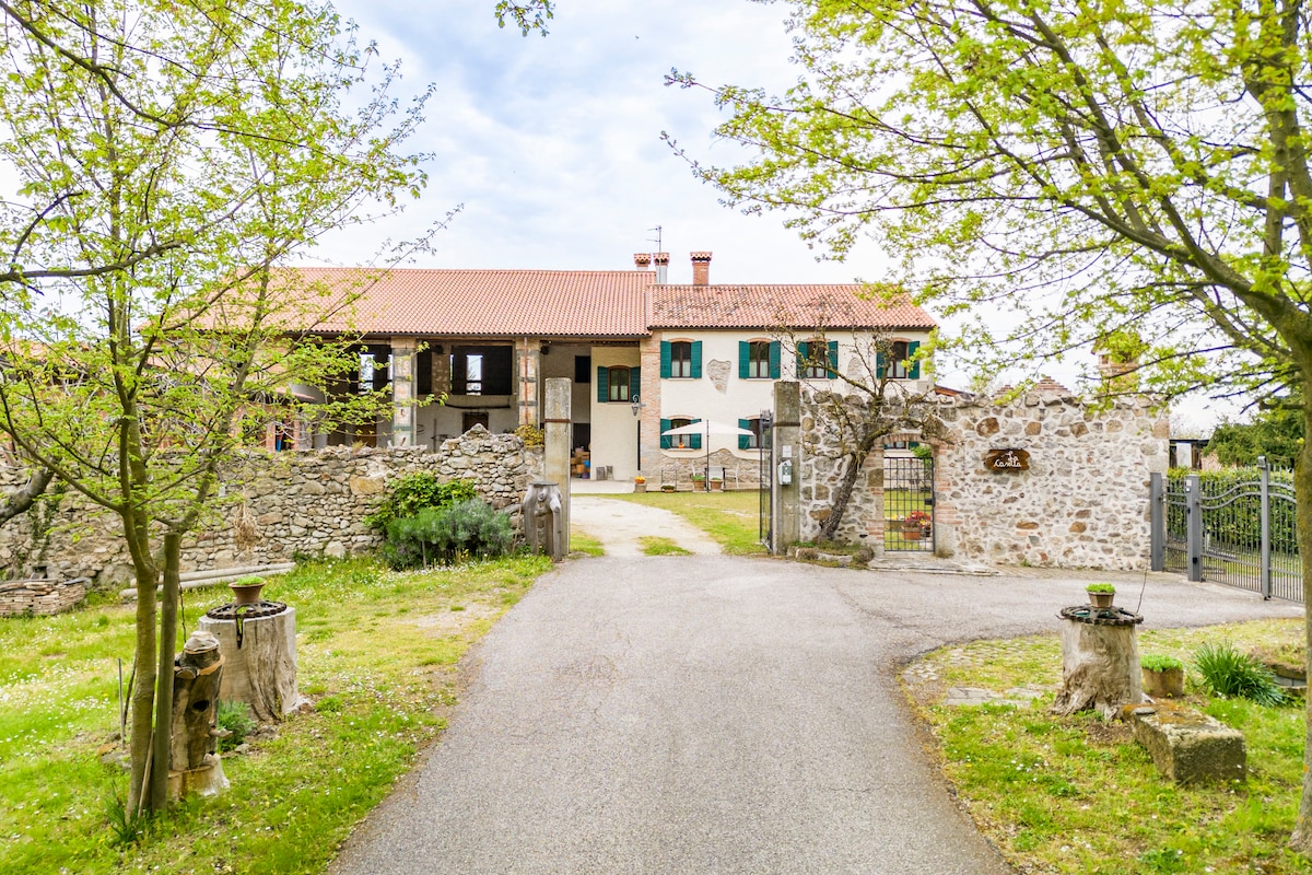 Discover our charming retreat in a 15th-century historic house: a beautifully renovated 23 sqm double room with private bathroom and modern comforts. With only two rooms, total privacy and tranquility are guaranteed for an intimate and rejuvenating stay amidst expansive green spaces. Relax by the pool and in the elegant lounge, and book sensory tastings of our organic wines. Just a short distance from Verona, Vicenza, Venice, Lake Garda, and historic villages.