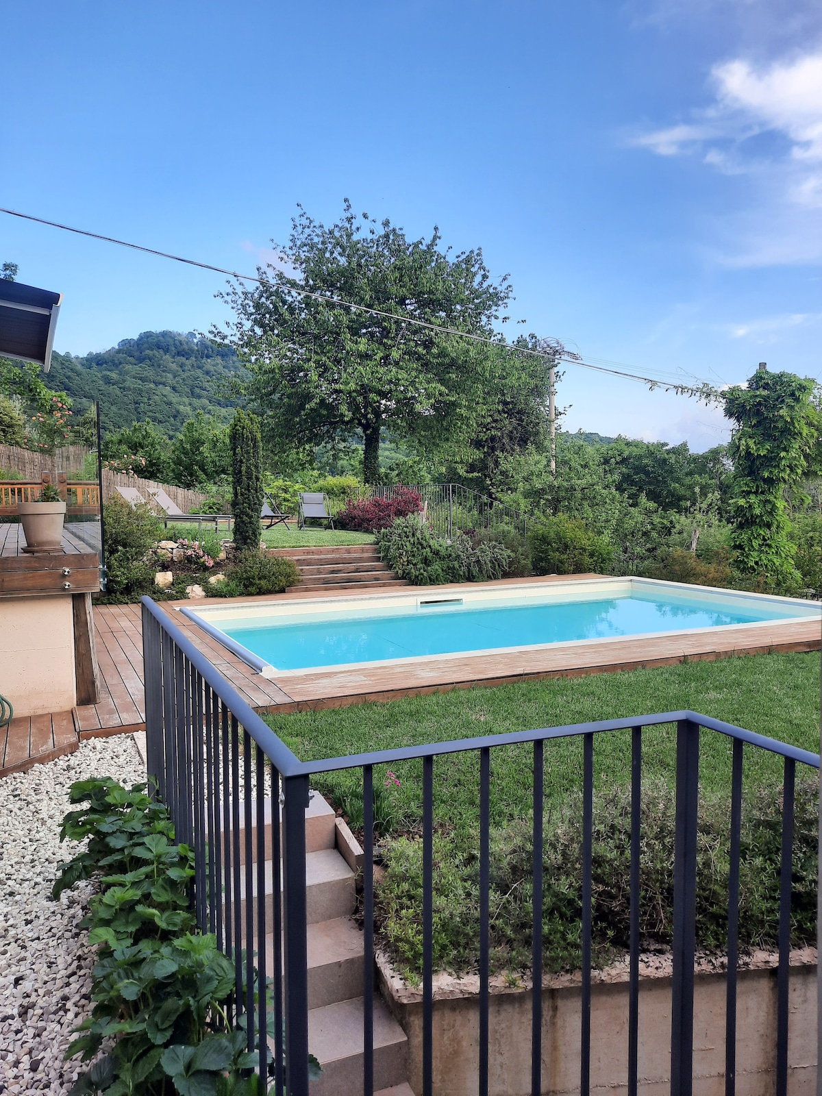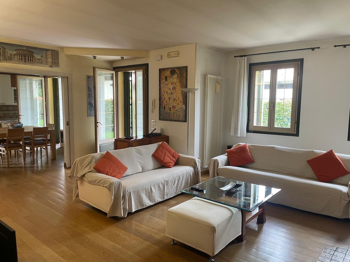 A soli 10 minuti dal centro di Vicenza, questo appartamento immerso in un ampio giardino offre tranquillità e relax. Con tre camere da letto, due bagni e un salotto con cucina, è perfetto per famiglie e bambini. Dopo una giornata di visite in città, potrai rilassarti nel verde e goderti il silenzio della natura. Ideale per chi cerca un rifugio sereno vicino alle bellezze di Vicenza.