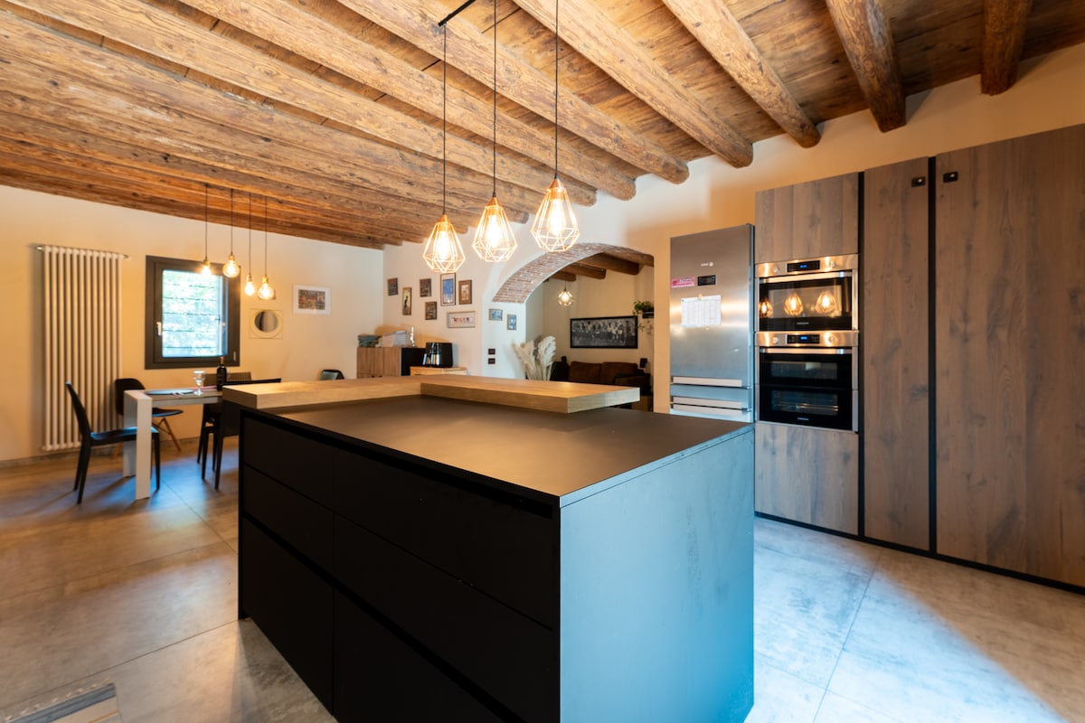 🌿 Discover the charm of a modern loft in an 18th-century rustic building, with bright spaces, a 1000 m² private garden, and a veranda equipped with a small fitness area. Just minutes from Bassano’s historic center and within walking distance of the hospital, ideal for couples, small families, or professionals. Modern kitchen with island, ultra-fast Wi‑Fi, smart TV, laundry, outdoor playground, and private parking. Design, comfort, and relaxation for a unique stay.