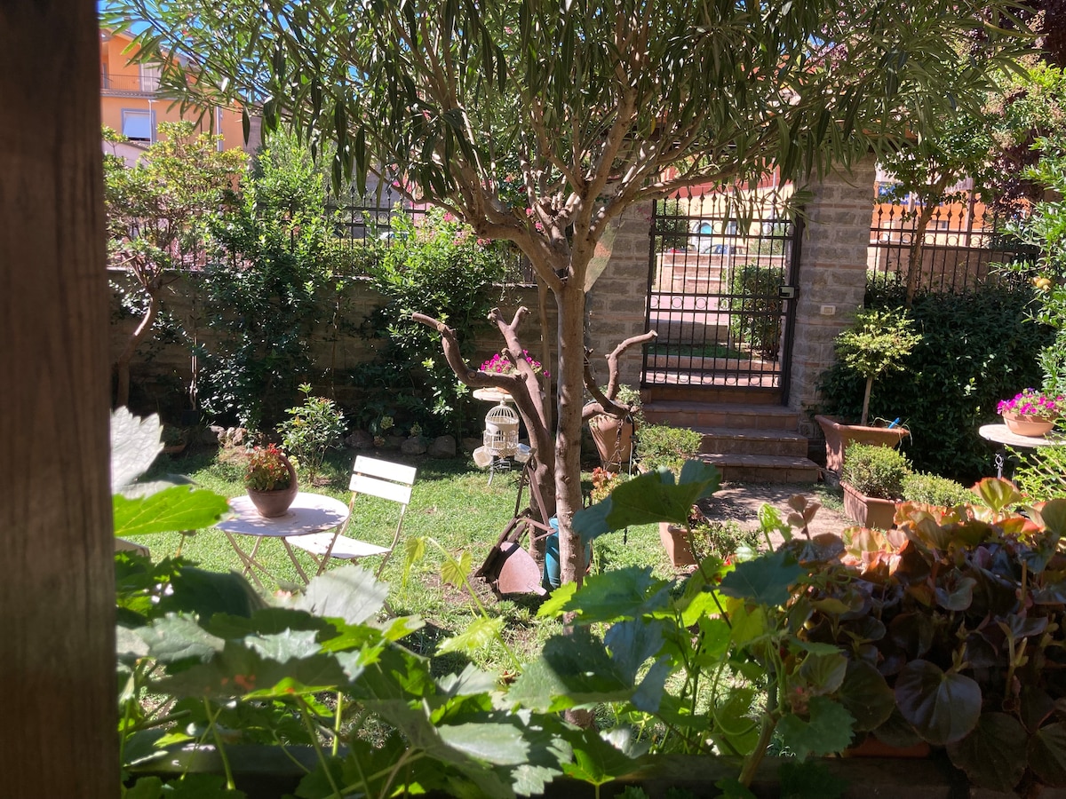 Luminoso e confortevole appartamento in Villa a soli 30 minuti da Roma, in zona residenziale collinare, con vista sulla campagna circostante.L'appartamento è al piano terra di una Villa con ingresso indipendente, parcheggio interno e ampio giardino;può ospitare fino a quattro persone, ha una camera da letto,un bagno,angolo cottura fornito di utensili, frigorifero, forno,microonde e zona living con wifi, tv, due poltrone reclinabili, un grande tavolo da pranzo e un divano letto matrimoniale.