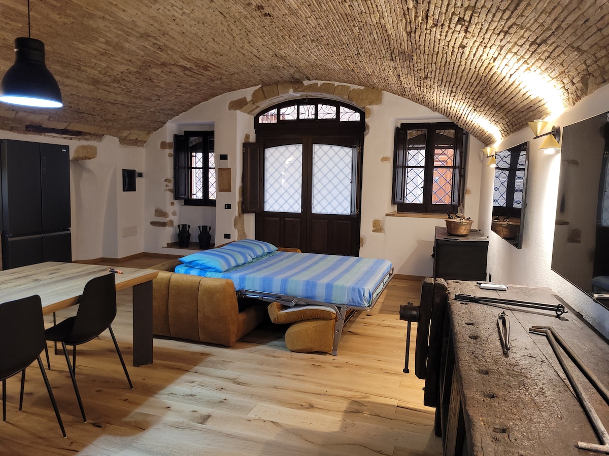 Enchanting accommodation on two levels. Access is via two flights of stairs, finished with beautiful ancient decorations that inspired the the logo of this house. The wrought iron beds and the furniture have been made by local master craftsmen, in this refined accommodation every detail has been carefully planned. The terrace is the real gem of the house, treat yourself with a warm bath in the Jacuzzi from which you can enjoy a priceless view on the city.