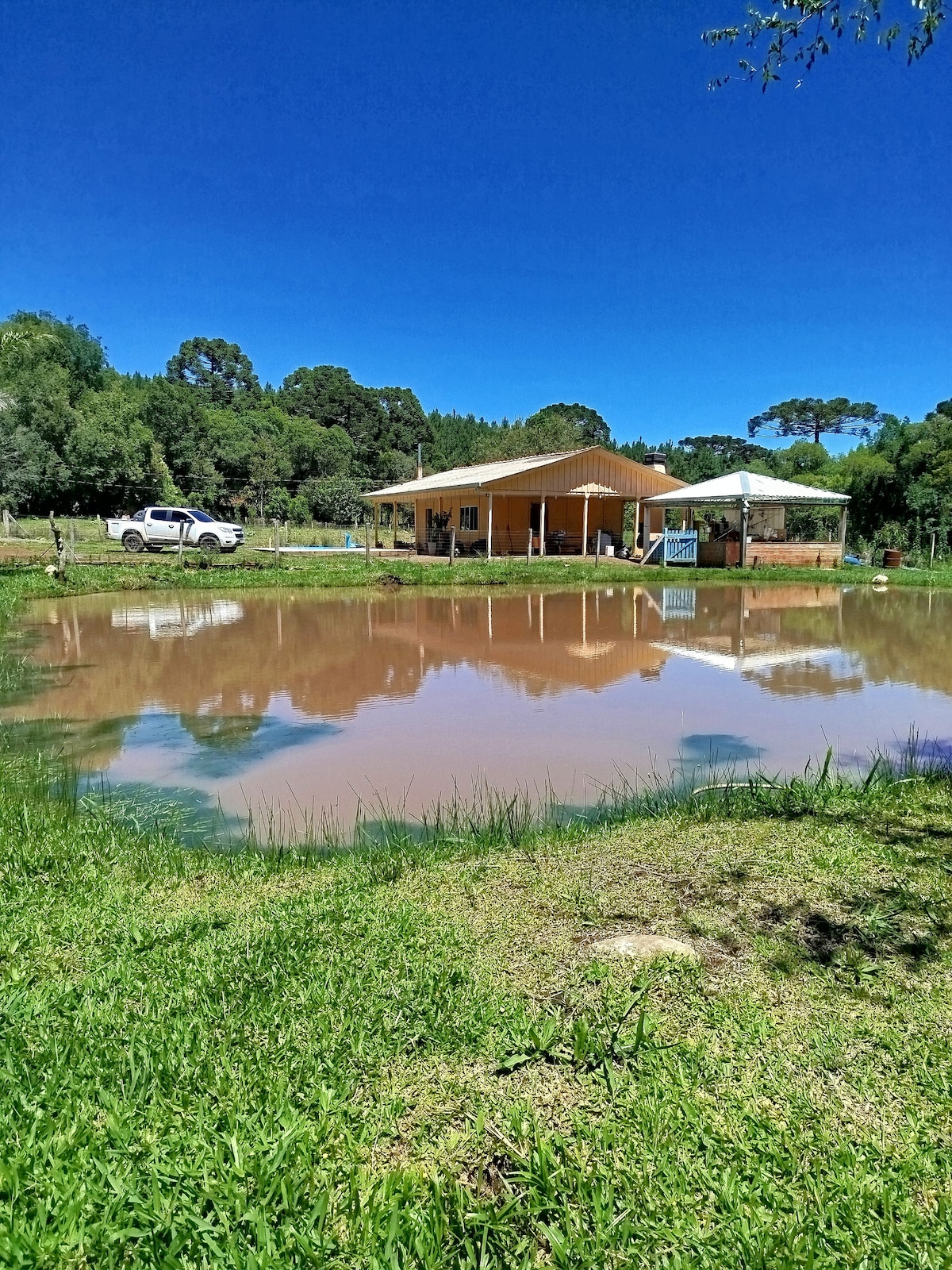 Tenha um momento de paz ao meio a natureza. Venha curtir os cantos dos passarinhos e escutar o barulho da água do rio. Espaço amplo com churrasqueira no bosque além da que possui no chalé, namoradeira, vários bancos voltado a margem do rio uma casinha na árvore e braseiro para assar marshmallos. Obs: A locação é para no mínimo duas noites e será feita com intervalo de um dia entre locação para que seja feito limpeza.