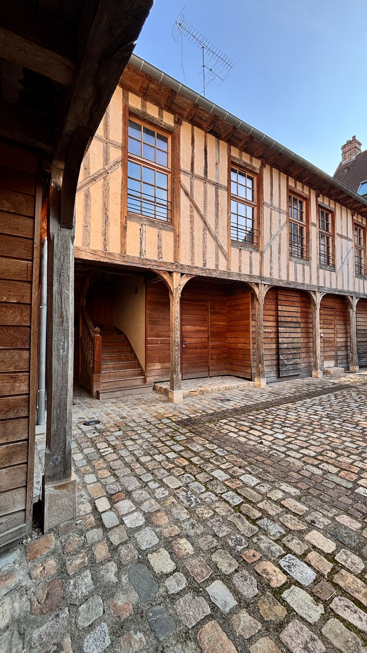 At the foot of the cathedral, with free underground parking (max height 2m), in the heart of the historic center, enjoy a picturesque setting and all the attractions accessible on foot: museums, restaurants, Cité du Vitrail, quays of the Seine. This bright family accommodation offers high ceilings, exposed beams, half-timbering, and a paved courtyard, in a typical Troyan building. Ideal for families and friends who appreciate history and architecture. Those sensitive to bells should refrain.