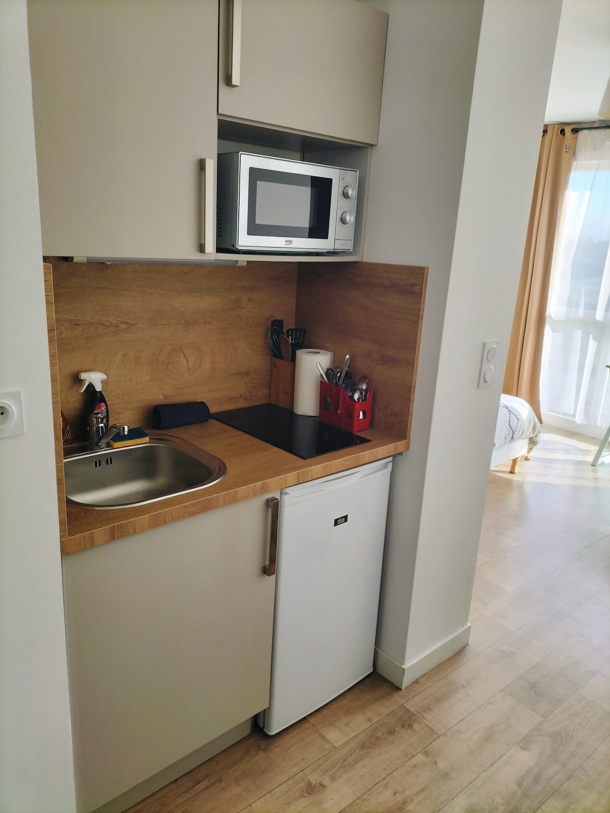 Détendez-vous dans ce studio calme et élégant, orienté sud-est pour profiter d'un réveil ensoleillé. Ce logement neuf de 24 m² se trouve dans une résidence paisible et dispose d'une place de parking numérotée (n°220). *A 10min du centre ville de Troyes. ✓Idéal pour un moment détente en duo ou en solo ✓Proche de l'UTT ✓Facilité d'accés proche de la rocade et des sorties d'autoroutes. *Equipements : ✓Dressing ✓Plaques de cuissons, Frigo, Micro-onde ✓Cafetiére Senseo ✓Linges et Serviettes
