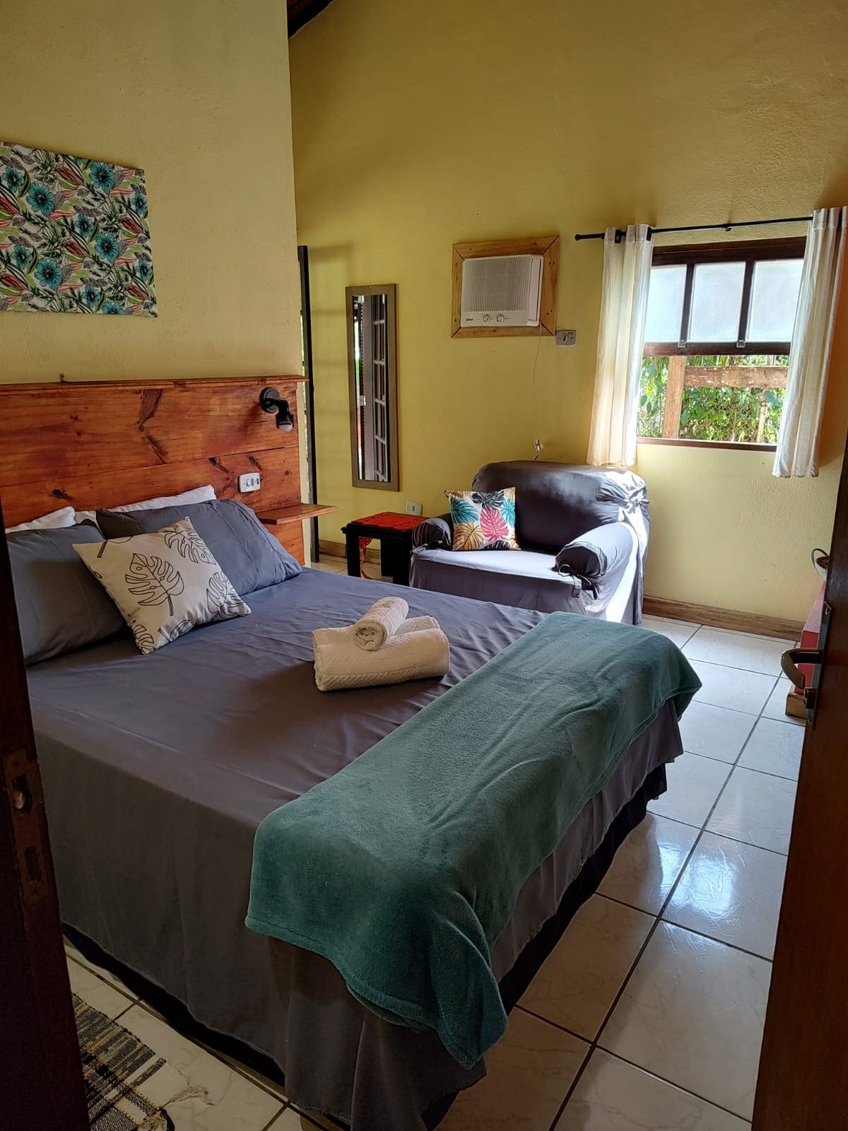 Dormir com o barulho suave do rio. Acordar com o canto dos pássaros. Descansar numa rede entre árvores. Relaxar numa piscina com água geladinha que vem de uma cachoeira. Ou simplesmente observar a natureza exuberante que nos cerca. E tudo isso com o conforto de nosso chalé completo, com cozinha privativa, banheiro, ar-condicionado, TV a cabo, varanda com rede, wi-fi e estacionamento. Estamos próximo de lindas cachoeiras e a poucos minutos de praias paradisíacas. Mercado a poucos metros.