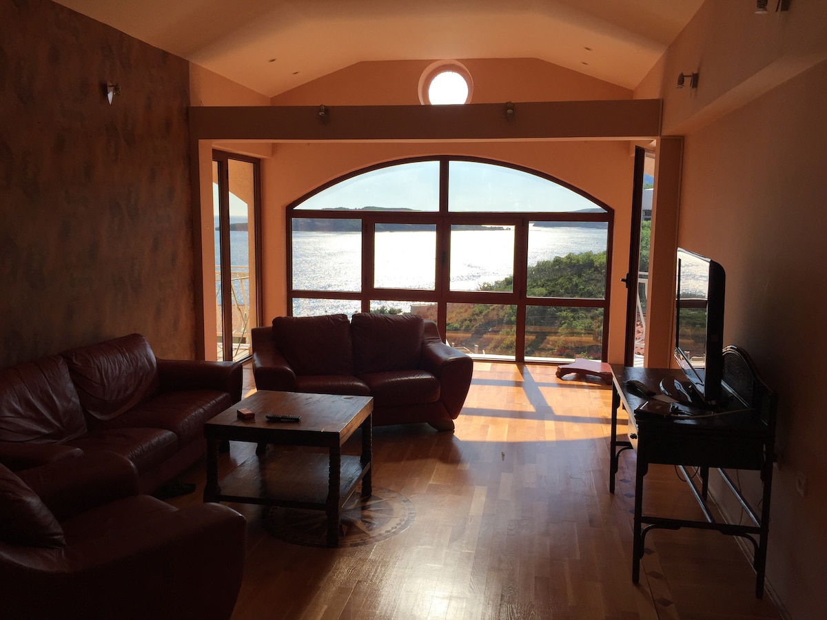 Modernly designed penthouse with a breathtaking view on the Bay of Kotor and Verige strait. The place where you will experience the most romantic sunsets in your life! Spacious, bright, elegant! With all the amenities for the ***** hotel, my home is the perfect place for your dream vacation with family and friends! Set at the perfect location, between Kotor and Perast, with Bajova Kula beach in front of the property - ideal for relaxing and still vibrant vacation.