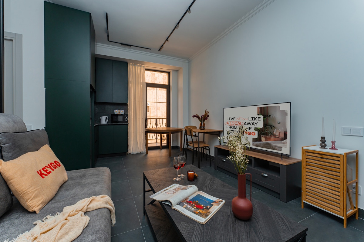 Kick back and relax in this modern, stylish space. Enjoy the incredible view from our open air balcony while you sip your coffee or a glass of wine 🌇 The big supermarket is right next to the building with anything you might need, the biggest mall in town with cinema theater is 10 minutes walk away. Enjoy a good movie on our big tv screen using our free Netflix and Amazon Prime accounts. The apartment is equipped with anything you might need to feel comfortable. The host is available 24/7