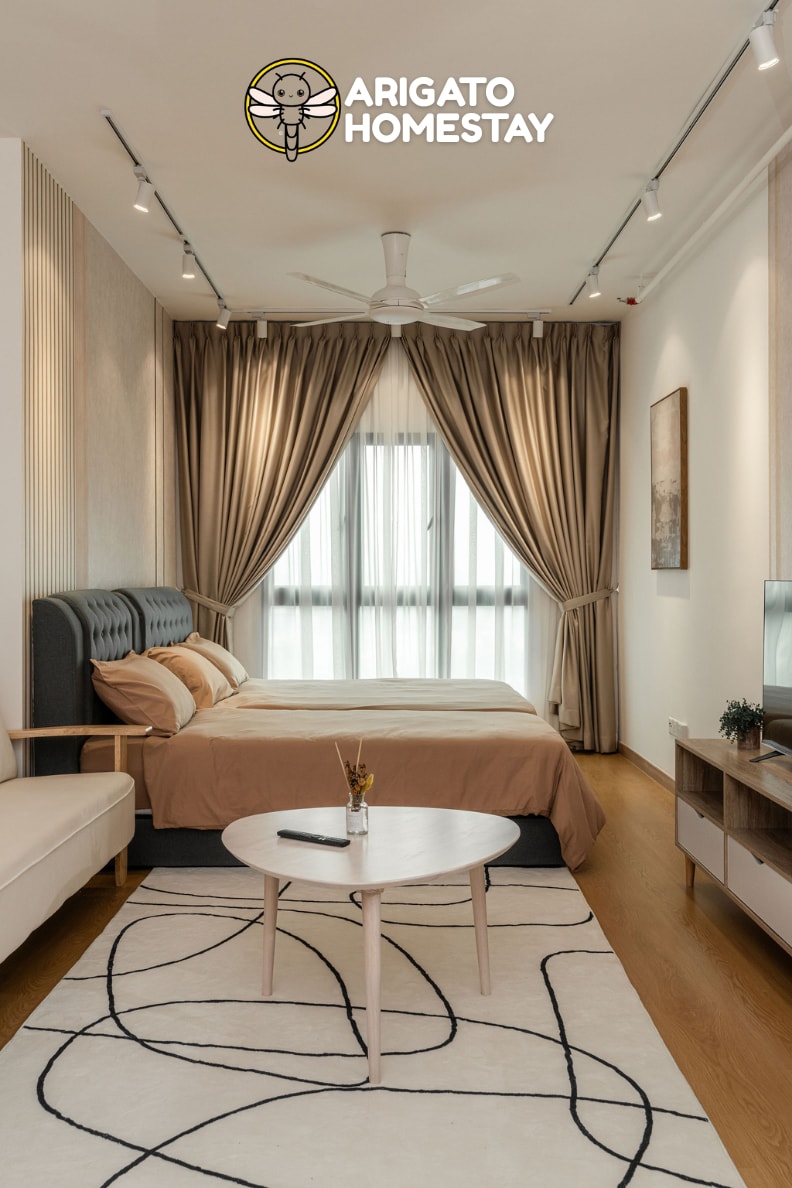 Stay in our premium studio apartment in the heart of Sri Hartamas. Enjoy easy access to Mont Kiara, Damansara, Bangsar, and Kuala Lumpur City. Our apartment features 5-star amenities and direct access to Hartamas Shopping Centre and Plaza Damas, offering a variety of local and international dining and shopping options. Disclaimer: This is a open layout studio unit, that has been partitioned with 1+1 bedroom, therefore the rooms do not have doors