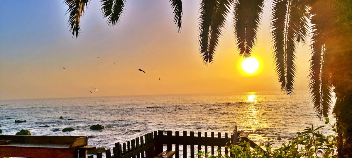 Cabaña con vista al mar y bajada privada a la playa el Clarón, ubicada en Caleta de Horcón, Puchuncavi, Chile. Tenemos una vista inigualable, lo que implica descender por un cerro para llegar a la cabaña ( hay escalera).Puedes ir caminando por la playa a la caleta de pescadores, puente de los deseos, feria artesanal. Puedes hacer teletrabajo y calentarte con estufa a leña Disfruta del sonido del mar de dia y de noche, y de la vista al mar en primera línea
