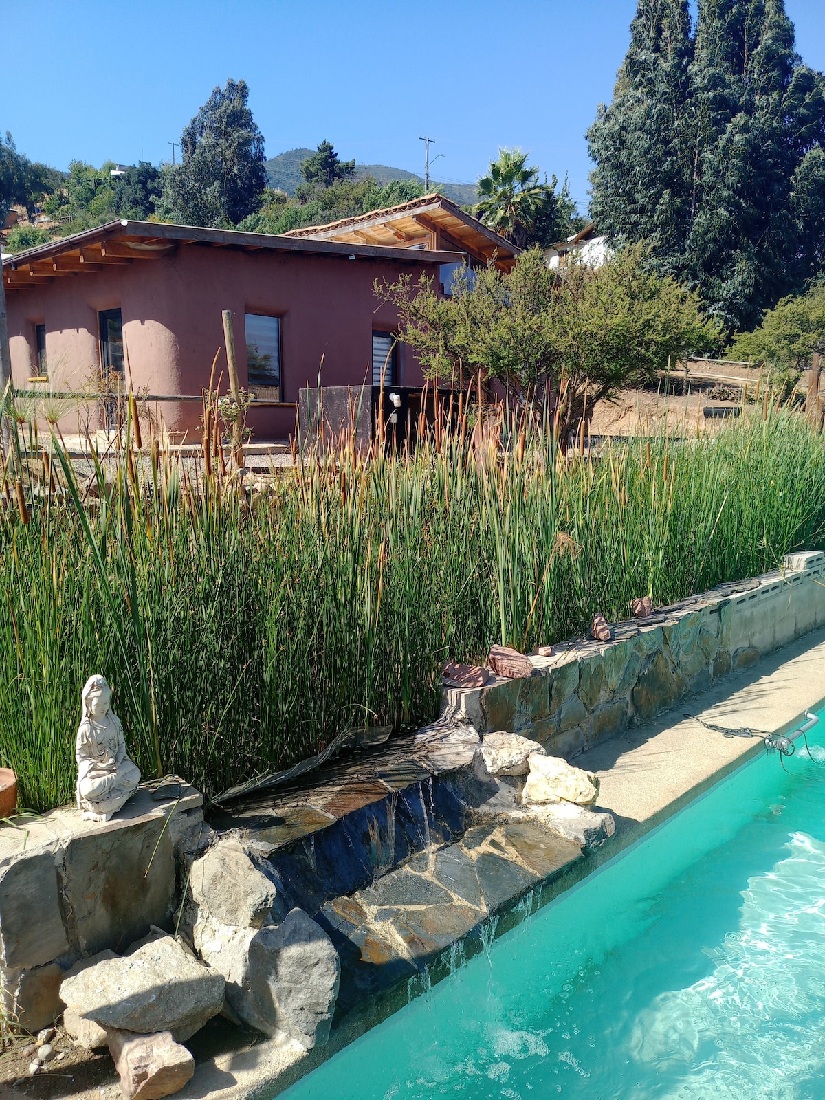 Hermosa casa en parcela. Temporada 2025 con relajante tinaja de madera. sector los Laureles-Limache. Cerca de Olmúe, 35 km de viña del mar, 20 km de Con-Con. Áreas verdes con bosquecito de árboles nativos y piscina. Aforo 7 huéspedes (living en terraza techada , cable, wifi, living comedor, estar, 3 habitac, 2 baños). Cerca de playas y muchos lugares para abastecimiento. La Tinaja utiliza gas para calentar el agua, el uso es autogestionado y se debe cancelar solo el cilindro de gas.