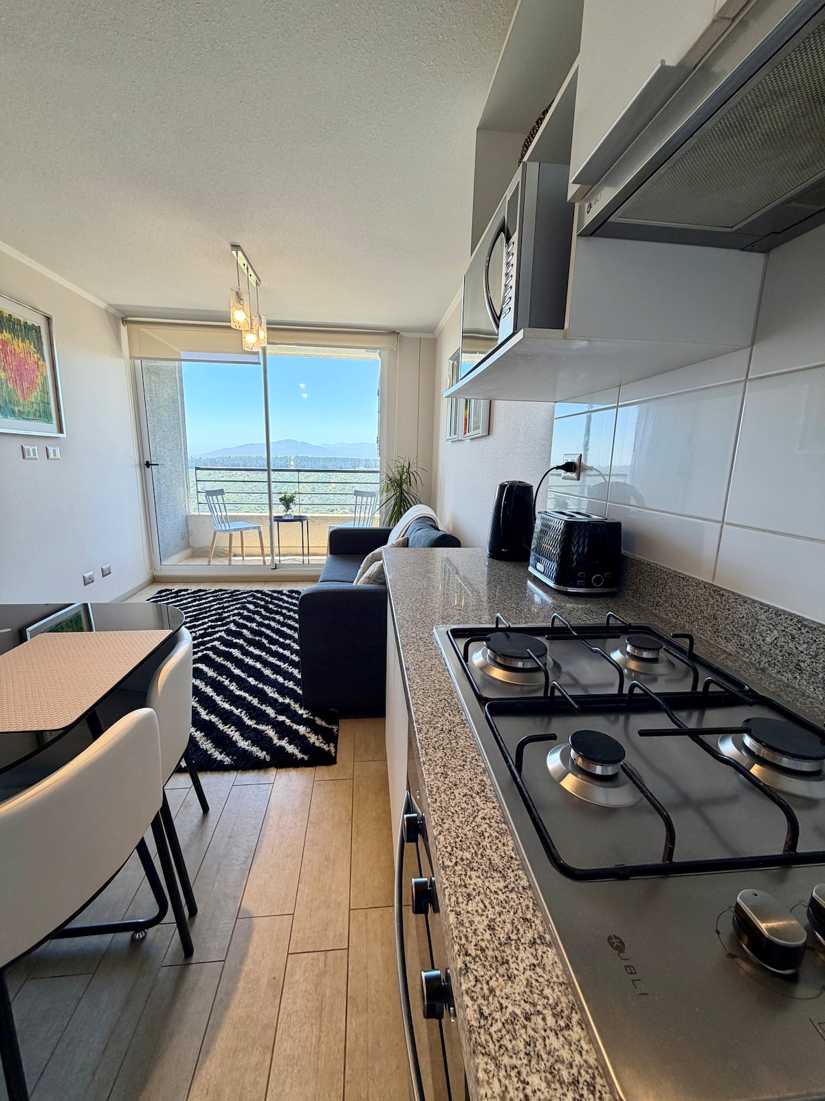 Hermoso departamento recién remodelado para ofrecer una experiencia inolvidable, en primera línea frente al mar cautiva todos tus sentidos. Preparado para estadías placenteras, cocina, coffee corner, escritorio-comedor, terraza, parrilla eléctrica, TV y Wifi. Caminado por bosques bajas a hermosa playa privada o a las piscinas, sauna, jacuzzi, canchas deportivas del condominio. Horcón tiene para comprar todo lo que necesites o a almorzar en los restaurantes. También puedes recorrer la costa.