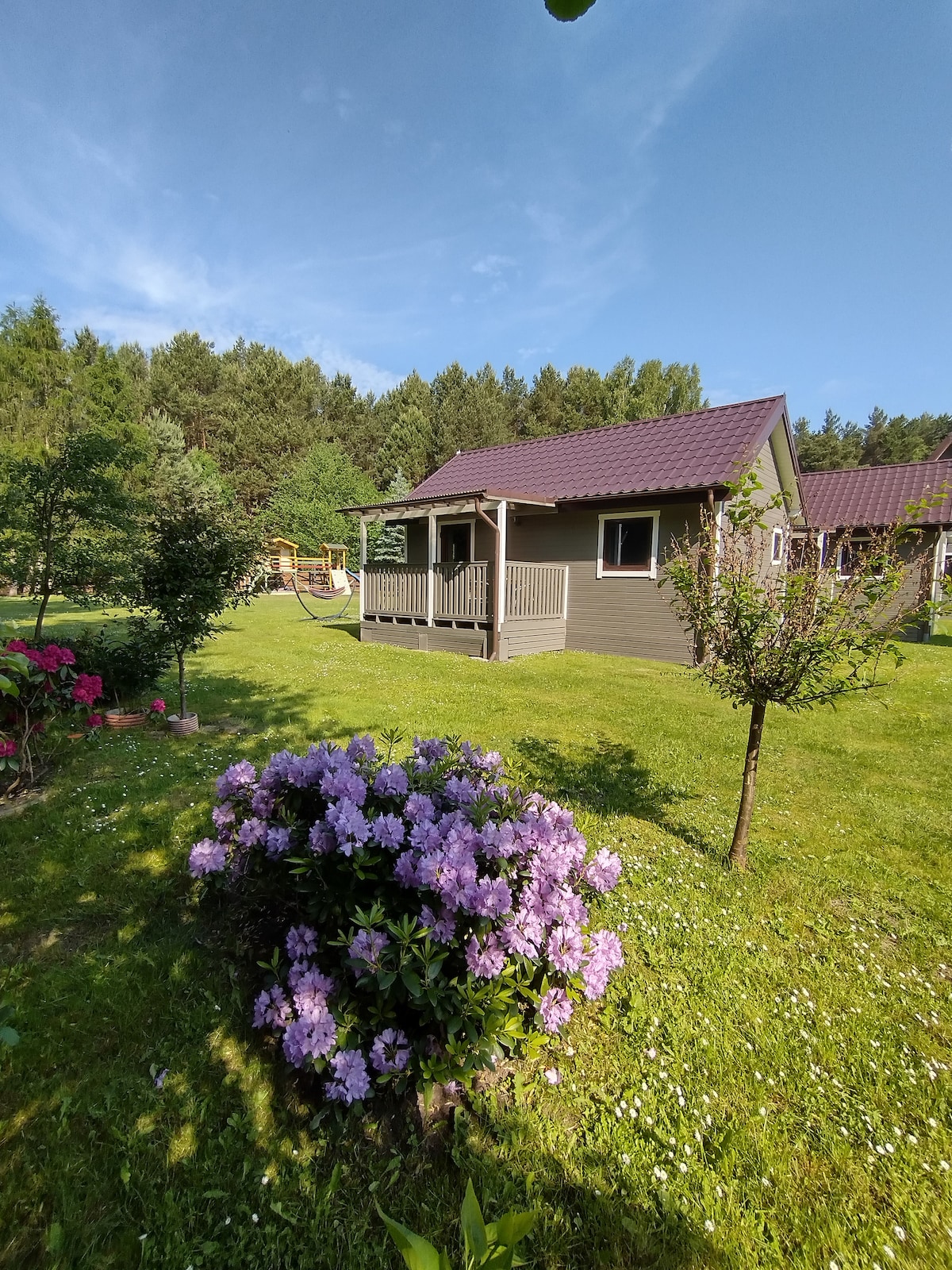 Two houses located on a green plot in Mieroszyno, featuring air conditioning, kitchen equipped with a dishwasher, induction hob, and a large refrigerator. The terraces are furnished with furniture and gas grills. Guests have access to a wood-fired jacuzzi and sauna, sun loungers, hammocks, and a fire pit, sports field to play badminton or volleyball. For children- a playground with two zip lines — one of them 40 meters long — swings, and more. It’s a great base for cycling and hiking trips.