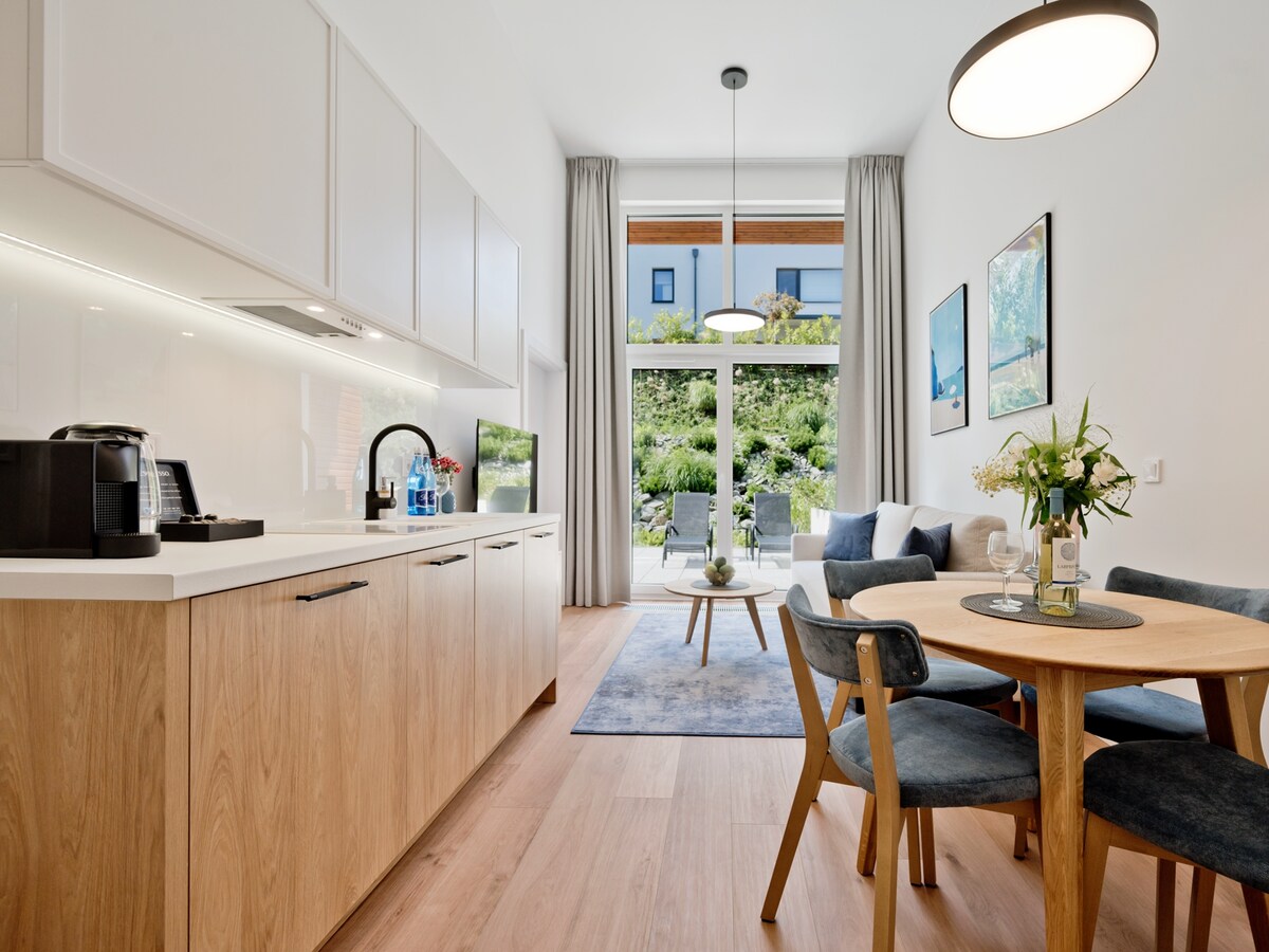 Luksusowy apartament zlokalizowany zaledwie kilka kroków od plaży nad Zatoką Pucką i molo w Mechelinkach. Jest to idealne miejsce dla osób szukających wytchnienia w otoczeniu pięknej przyrody i jednocześnie bliskości atrakcji, które oferuje Aglomeracja Trójmiejska. Mechelinki oferują jedne z najbardziej zjawiskowych krajobrazów na polskim wybrzeżu. W zasięgu chwili spaceru dotrzemy na nadmorskie klify dzielące je od Gdyni, do przystani rybackiej czy Rewy – mekki sportów wodnych.