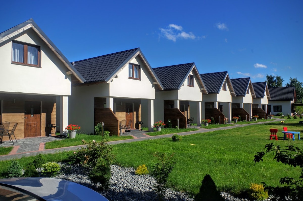 Przytulny 6 osobowy domek apartamentowy, dostosowany do pobytu rodzinnego jaki i grup znajomych. W tym przyjemnym, przestronnym i komfortowo urządzonym domku można wyciszyć się i odpocząć od codziennych obowiązków. Każdy element wyposażenia został wybrany z największą starannością tak, aby uczynić Państwa pobyt jak najbardziej udanym.