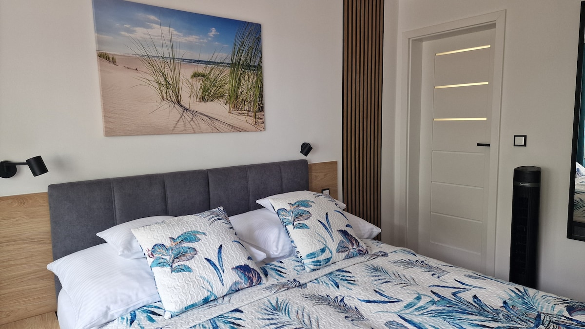Apartament rodzinny z 2 sypialniami i prywatnym patio, idealny dla 4–5-6 os Położony na parterze z niezależnym wejściem, zapewnia prywatność i swobodę wypoczynku. Przed apartamentem znajduje się patio z meblami ogrodowymi – idealne na poranną kawę i relaks. Do dyspozycji Gości prywatna łazienka oraz aneks kuchenny do przechowywania i podgrzewania posiłków. Spokojna okolica blisko plaży Parking płatny, zakaz palenia. Dodatkowo: rowery elektryczne Gazelle, pralnia i ekspres z kawą ( usługi płatne)