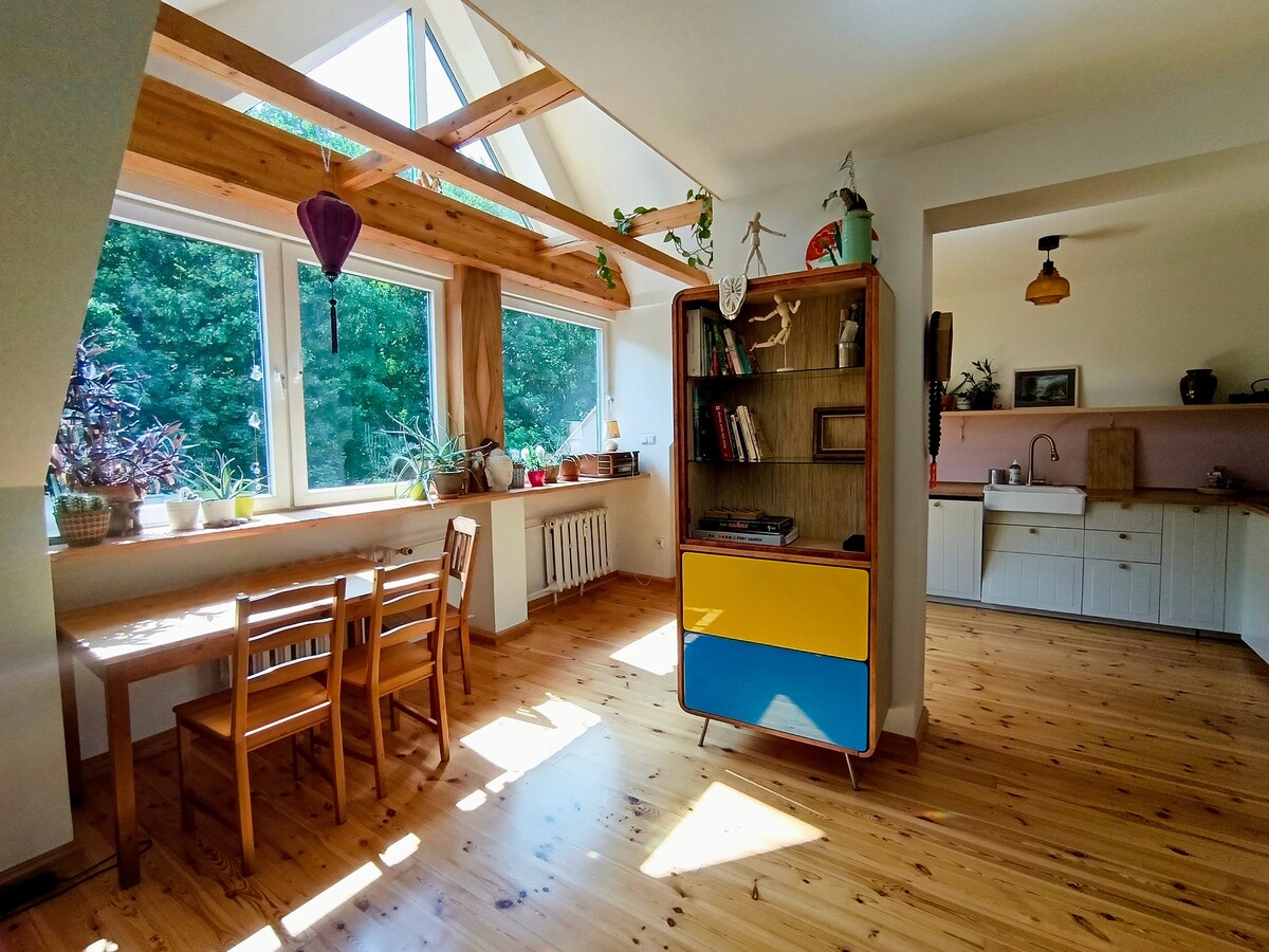 Enjoy a peaceful and stylish stay at this centrally-located place. A newly built, beautifully furnished apartment, perfect for a quiet stay in the heart of Gdańsk. Located on the greenest side of the city center, right next to Góra Gradowa. Although historical and cultural sights, shops, and restaurants are only a 10-15 min walk away, the area feels peaceful and secluded. The place offers a unique, cozy, and very comfortable design, perfect for a couple and a weekend escape.