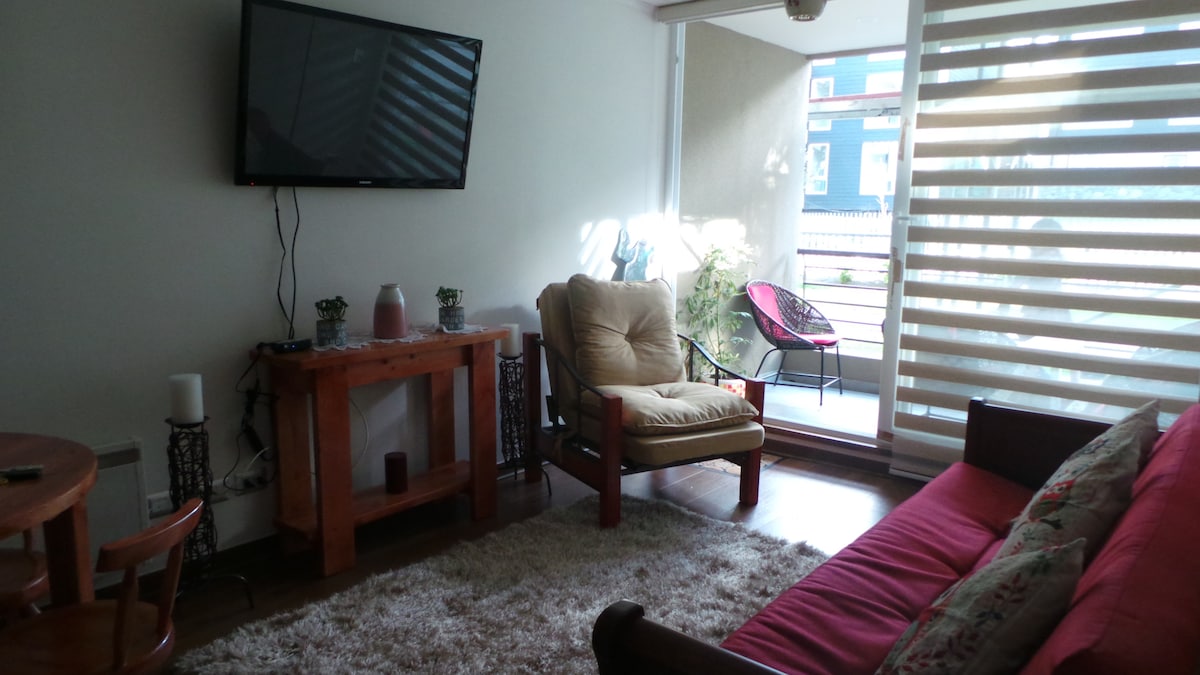 Departamento ubicado en condominio Payllahue camino al volcán y a 5 minutos del centro de la ciudad. Se encuentra en el primer piso frente a la piscina, equipado para cuatro personas, una habitación con cama matrimonial y cama diván en el área del living. Con todo lo necesario para una cómoda estadía en la hermosa ciudad de Pucón.