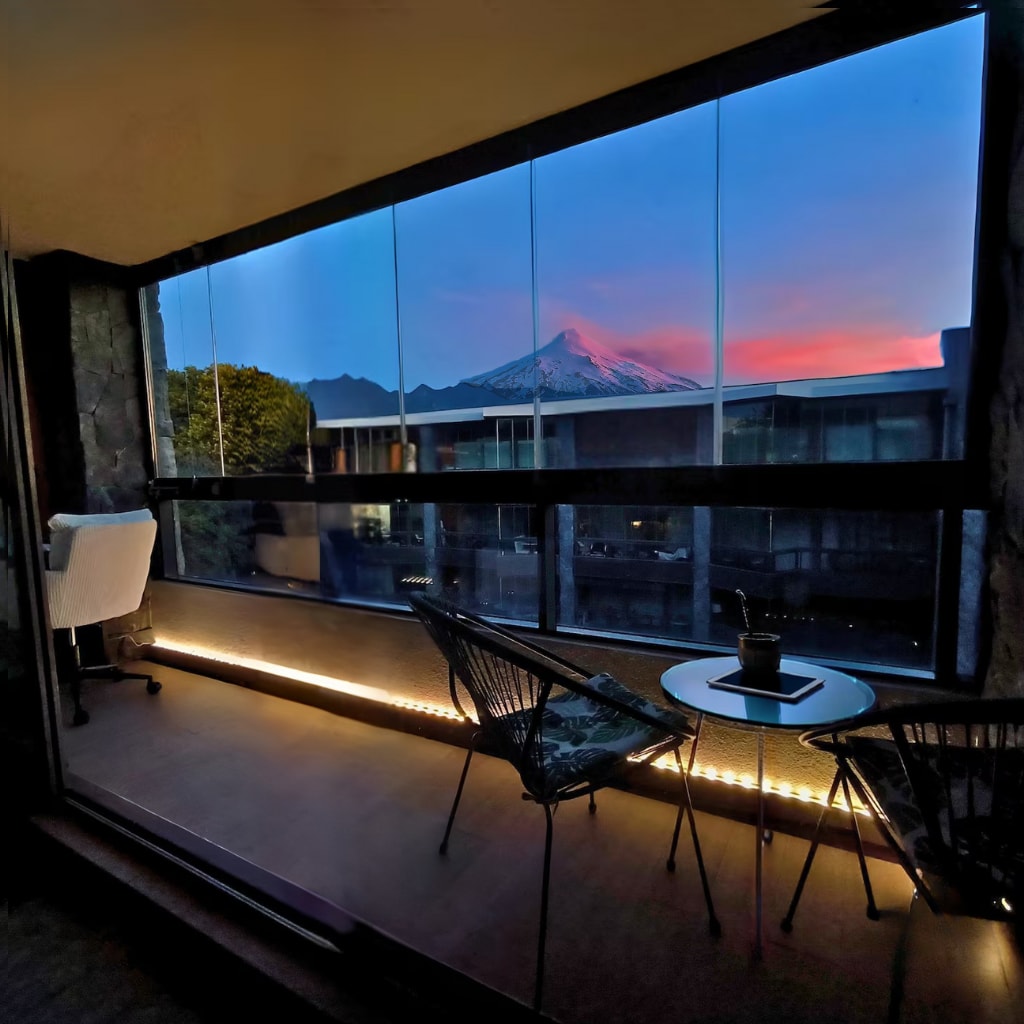 RYA Pucón, tu refugio de descanso y aventura Disfruta de la magia del sur en RYA Pucón, un departamento pensado para quienes buscan relajarse, reconectar con la naturaleza y vivir momentos inolvidables. Ubicado con vista directa al lago Villarrica y con acceso a playa privada, este espacio te regala amaneceres únicos y atardeceres que se graban en el alma. Disfruta de sus jardines y playa, además de un sorprendente club house con salón de Pool, gimnasio, sala de juegos, cine, jacuzzi.