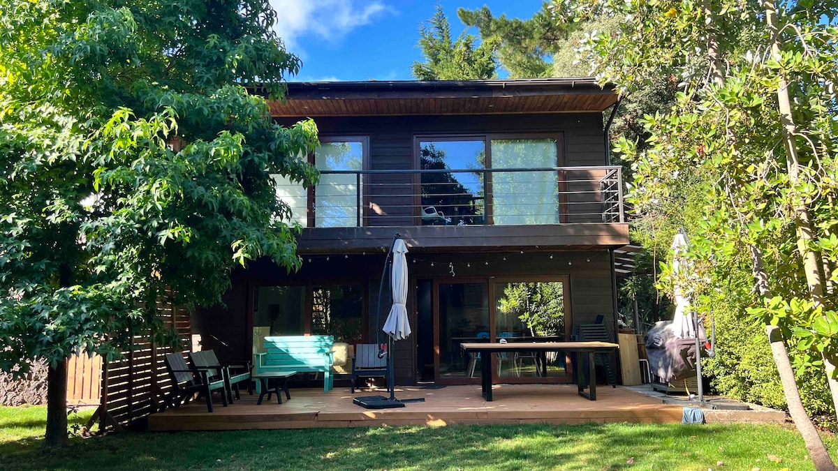 Cozy house with direct access to the beach and pier on the lake. A 10-min walk from downtown Pucón and 25 min by car from the ski resort. Designed to provide comfort for groups of up to 9 people, the 5 bedrooms distributed over 3 floors offer spaciousness and privacy. The house has 4.5 bathrooms, a barbecue, and a backyard. The private condominium offers a gym, clubhouse, and both a normal and heated swimming pool. Ideal for families, pets are welcome. Enjoy an unforgettable vacation!
