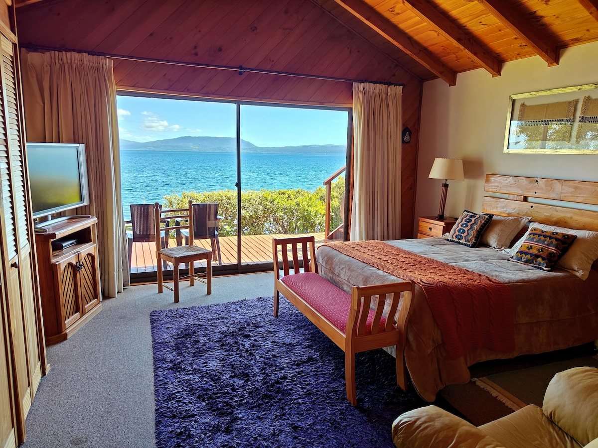 Spacious and fine apartment (2nd floor), in "Parque Pinares" condominium (www.parquepinares.cl), located on the shore of Lake Villarrica, with private access to the Lake and surrounded by native trees and very close to Pucon (less than 1 Km). With large living room and terrace overlooking the lake, boats and mountains. Suite bedroom with lake view, walk-in closet, security box and large bathroom. It can go to a wide variety of restaurants, casino and nightclubs, Walking or in Uber.