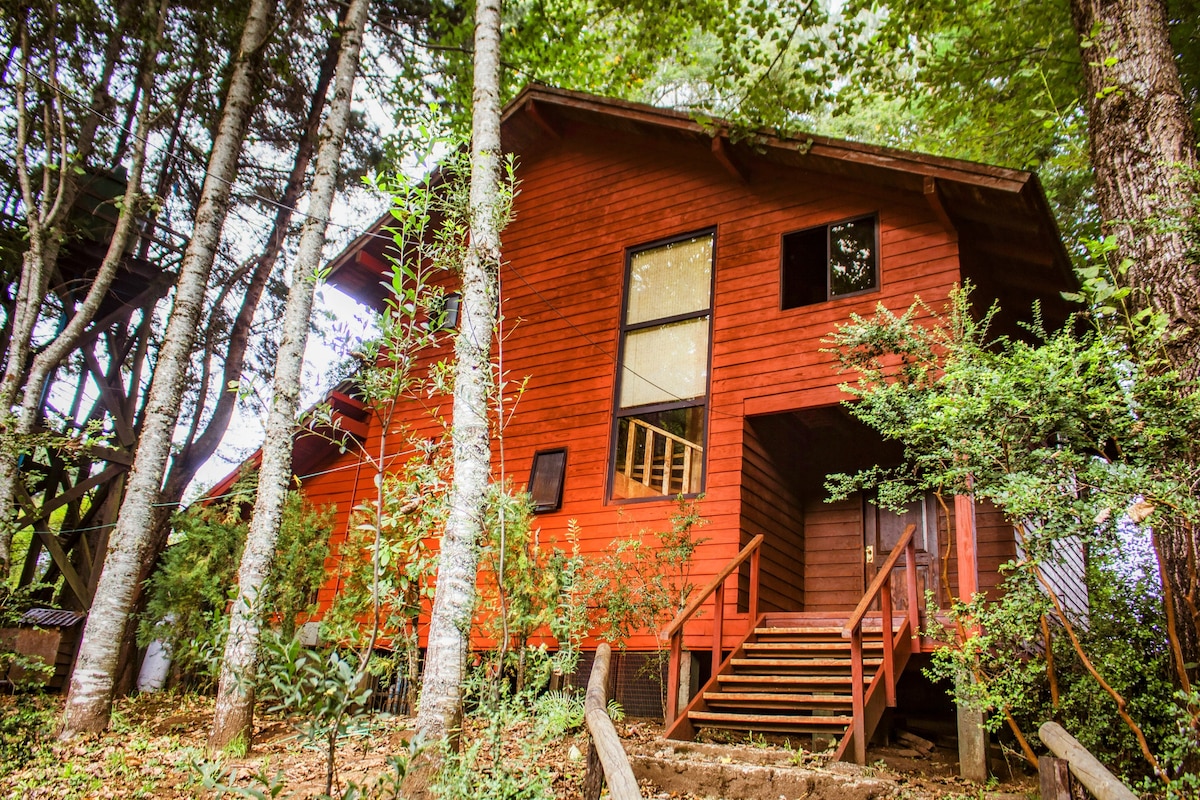 Casa Inserta en hermoso bosque, en condominio privado con mirador y acceso al río Trancura, a 5 km del centro de Pucón y 15 min del Centro de Ski. Cerca de minimarkets. La casa es muy cómoda para hacer vida familiar y para amantes de la naturaleza. Tiene Wifi. Calefacción con Bosca. Tinaja a leña, de uso libre, sólo tienes que comprar la leña y encender el fuego las horas previas. Ideal para disfrutar en familia, amigos y pareja. (costo opcional de servicio de encendido, tratar con anfitriona)