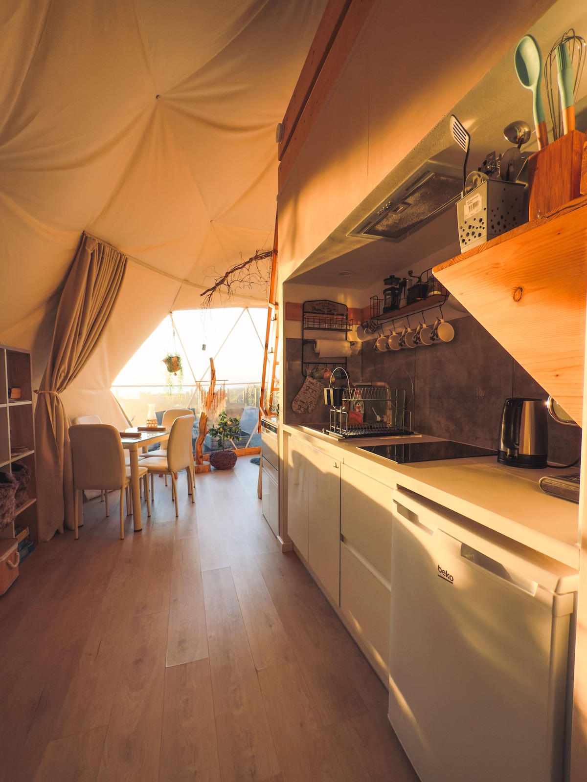 Zacisze Haven Wapnica Imagine soaking in your private hot tub while watching the sunset over Lagoon. Our romantic glamping Dome is a romantic spot in nature with stunning water views. You can use sauna, hot tub, terrace with water sunset views and delightful interiors. Perfect for couples, families and pets. Explore nearby Międzyzdroje, hiking, cycling, kayaking and beaches. We have bicycles and kayaks for hire. If the Dome is booked, check our Beach House or Sunset Cabin on my profile.