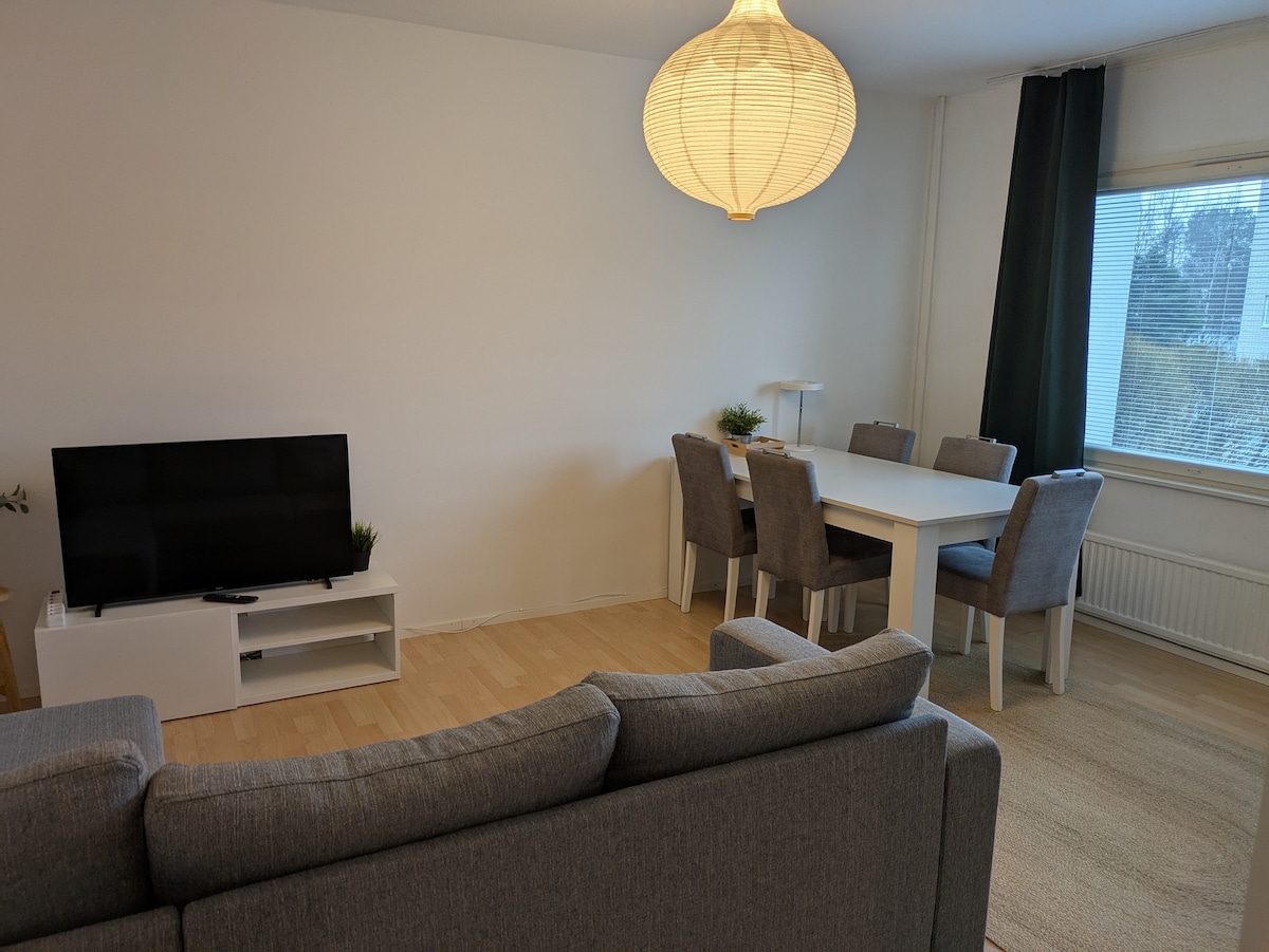 Vuonna 2021 valmistunut rauhallisella sijainnilla, mutta hyvien julkisten yhteyksien päässä oleva 58 neliöinen kolmio. Sopii hyvin pienelle perheelle, läpikulkumatkalaisille tai esimerkiksi sairaalan asiakkaille. Huomioi, että asunto ei sijaitse aivan keskustassa. Autolla matka-aika keskustaan on noin 15 minuuttia. Ilmainen lämpötolpallinen pysäköinti autokatoksessa. Asunnon vieressä on bussipysäkki. Asunnossa on lisäksi tilava lasitettu parveke. Astiasto vähintään kuudelle hengelle.