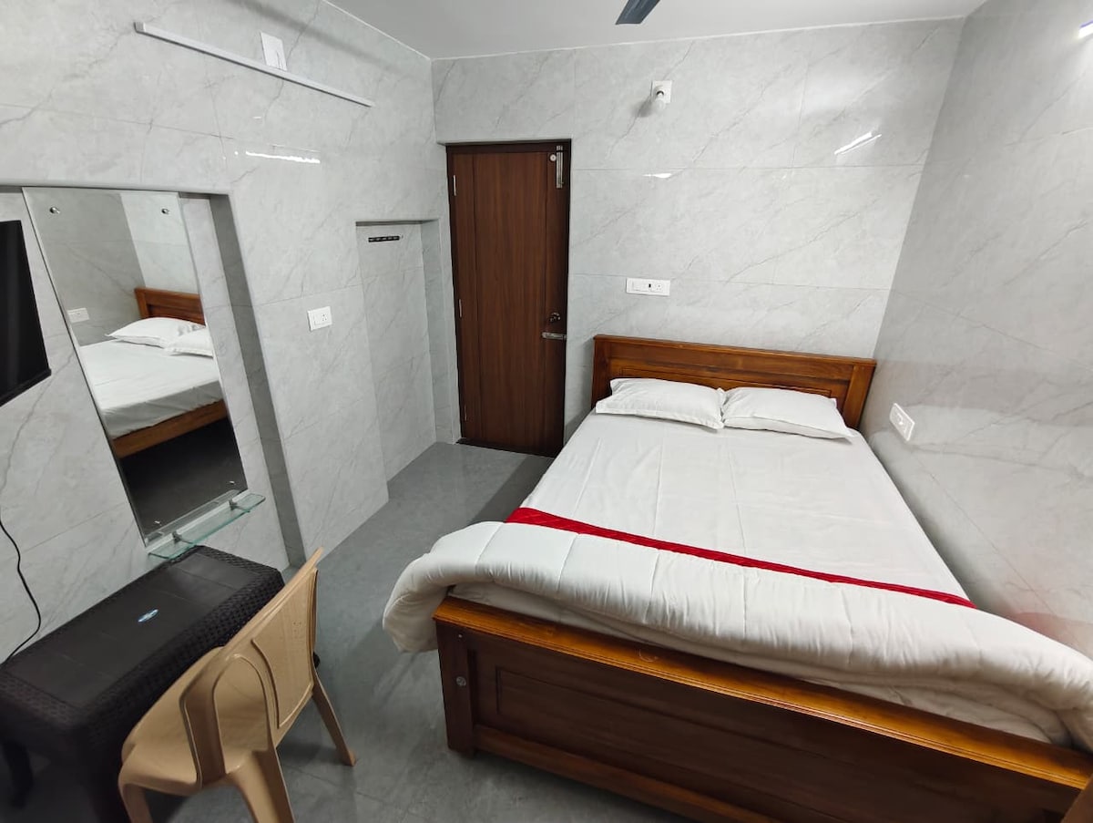 This is a compact, air-conditioned room located on the first floor. Perfect for solo travelers or couples, the room includes high-speed Wi-Fi and a smart TV for your entertainment. The room also features a private balcony overlooking a lively market street, offering a pleasant spot to relax and enjoy the view. Please note: Car parking and lift are not available. Nearby Attractions: Rock Beach – 5 mins drive / 15 mins walk White Town – 10 mins walk Sri Aurobindo Ashram – 10 mins walk