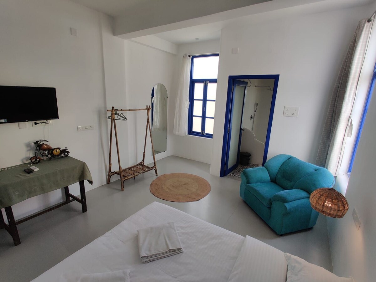 This is a compact, air-conditioned room located on the first floor. Perfect for solo travelers or couples, the room includes high-speed Wi-Fi and a smart TV for your entertainment. The room also features a private balcony overlooking a lively market street, offering a pleasant spot to relax and enjoy the view. Please note: Car parking and lift are not available. Nearby Attractions: Rock Beach – 5 mins drive / 15 mins walk White Town – 10 mins walk Sri Aurobindo Ashram – 10 mins walk