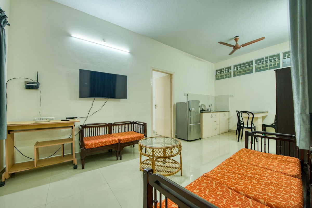 1 small bedroom simple and clean flats in the heart of Pondicherry .Each apartment has a kitchen with basic utensils,fridge and induction stove, air conditioned rooms, Bathrooms have shower and running hot water, TV and free wifi. Beach, good restaurants and coffee shops, shopping areas and tourists spots of Pondicherry are all at a walk-able distance. Best suited for families. Peaceful and quite place to return to after a long day of sightseeing and shopping.