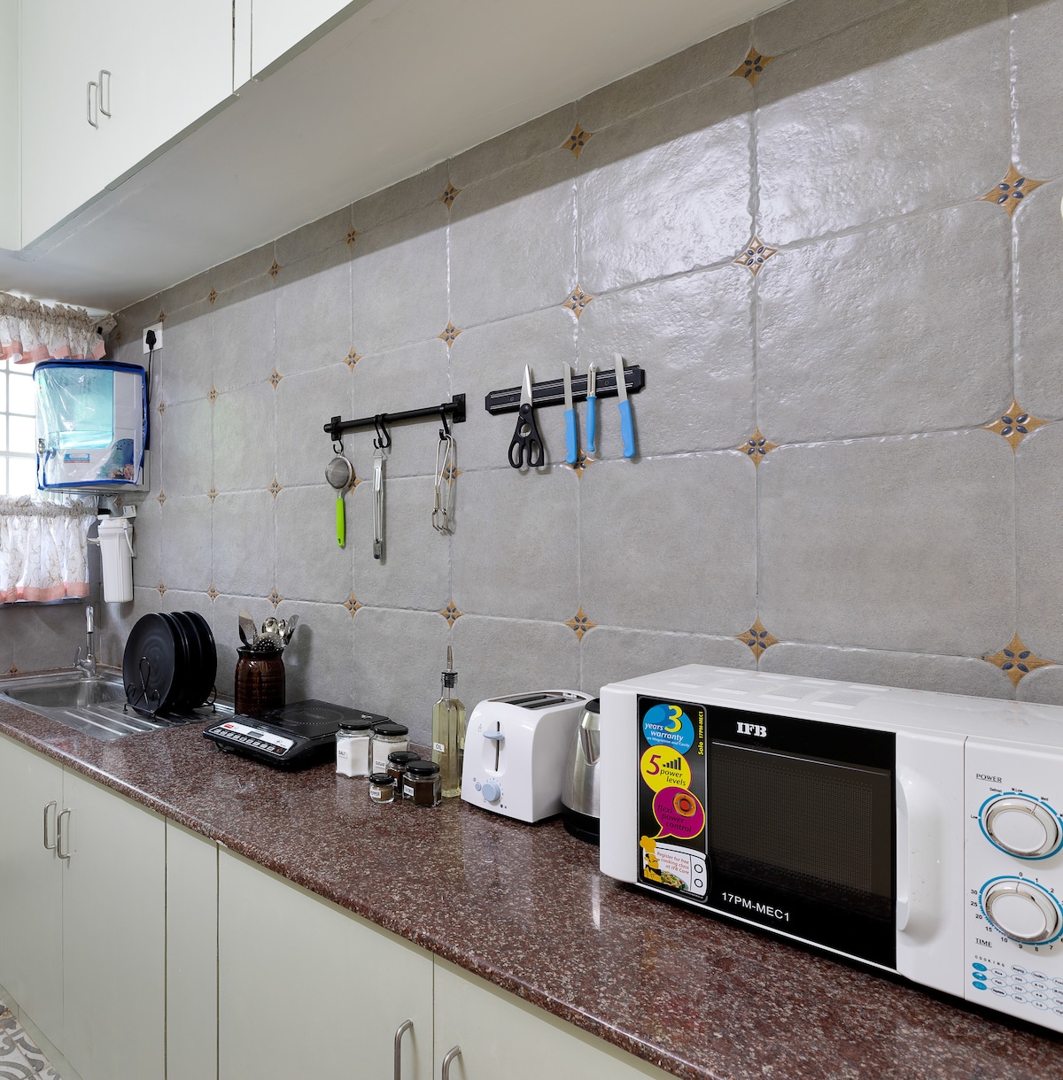 Your home away from home in Auroville has been tastefully decorated to a Chettinad theme. Every corner of our home is Instagramworthy with colourful interiors, kolam art, antique decor and more. The 1BHK can comfortably accommodate up to 4 persons with a swing bed and sofa bed in the living room. hile there are plenty of restaurants nearby, our kitchen has been thoughtfully equipped for all your needs - be it to make a quick omelette or a full Indian meal. So sit back, relax and sip your coffee.