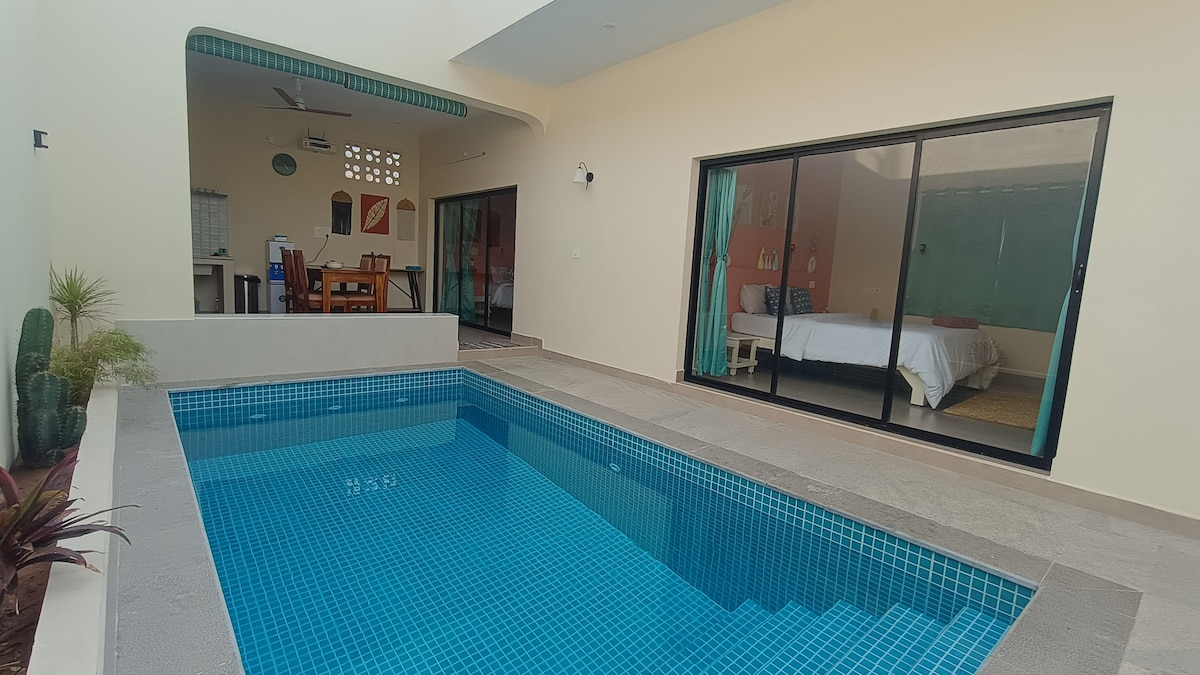 insta - secret_tuscan_garden 5 minutes by car to Serenity Beach and walking distance to the coolest restaurants. No loud parties please. It is a quaint, international Aurovillian residential community. 3BHK Villa with a full sized swimming pool .The property is located in a cashew grove in the midst of nature. A stay that you can never forget. Dedicated kids room with play amenities. The guest gets access to the entire property. Rules: Pool Timings/ quiet hours : 8AM - 8PM No two wheelers
