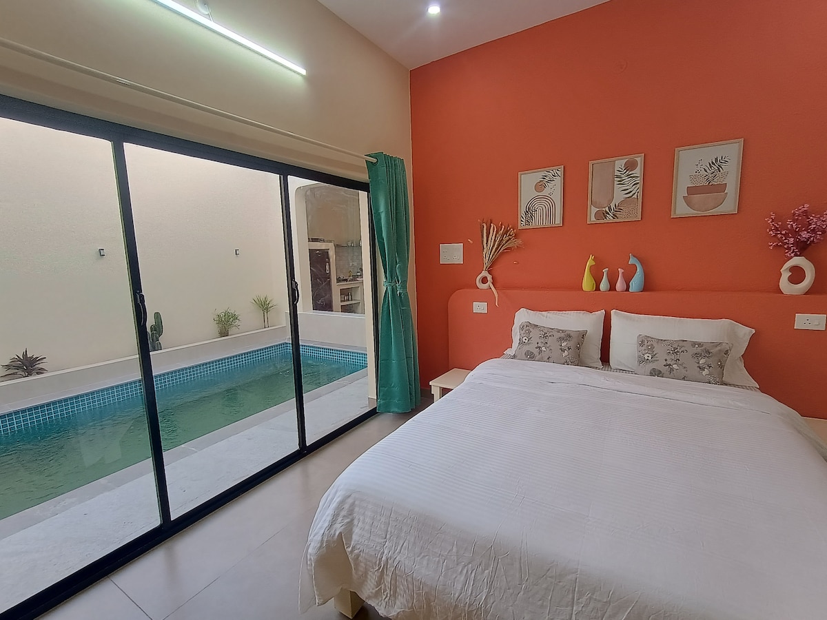 insta - secret_tuscan_garden 5 minutes by car to Serenity Beach and walking distance to the coolest restaurants. No loud parties please. It is a quaint, international Aurovillian residential community. 3BHK Villa with a full sized swimming pool .The property is located in a cashew grove in the midst of nature. A stay that you can never forget. Dedicated kids room with play amenities. The guest gets access to the entire property. Rules: Pool Timings/ quiet hours : 8AM - 8PM No two wheelers