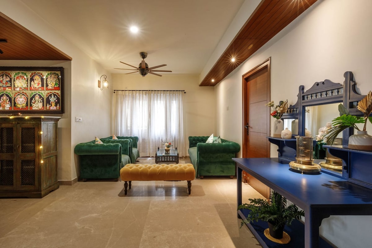 LUXURIOUS SPACE, BRIGHT NATURAL LIGHT, AND EXCELLENT VENTILATION is what you can expect in our home.Located in peaceful French quarter,This 3BHK on top floor is aesthetically designed with old restored teakwood furniture . There is a private terrace where guests can unwind in mornings or late evenings. The apartment is designed keeping in mind all comfort points for family and friends group