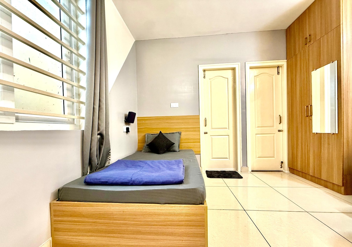 Our cozy private studio property offers everything you need for a comfortable stay. The studio has a single bed, and its NonAC. A highlight of this studio is the fully equipped private kitchen. Additionally, a spacious working desk is available with dedicated wifi. There's a private washing machine and washroom. The location is a major plus – just 3 km from IIM Bangalore and a mere 1 km from Meenakshi Mall, Bannerghatta Road. You'll have easy access to shopping, dining, and local attractions.