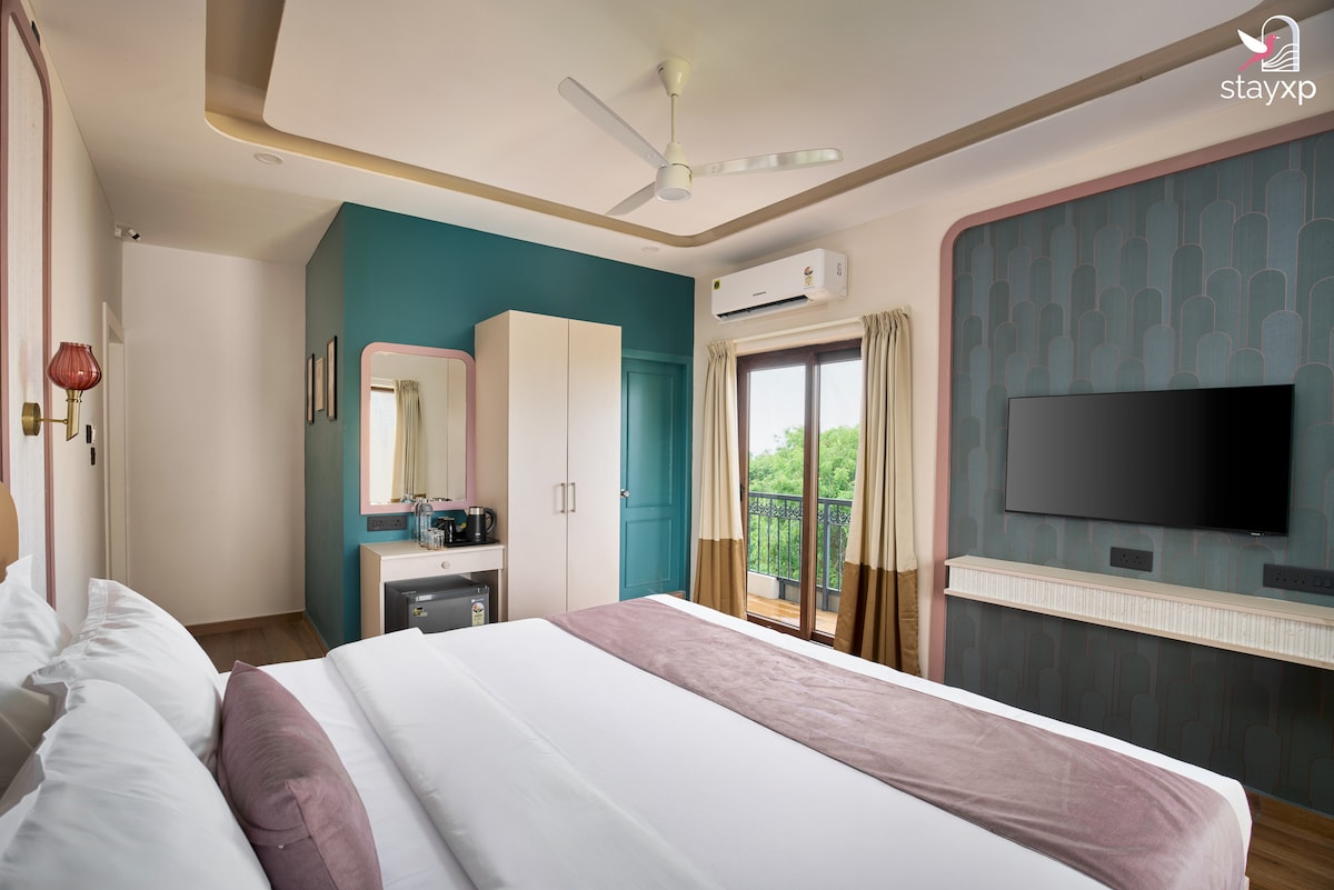 Deluxe Room with Balcony | Free Breakfast | 100 Mbps Wi-Fi Stay comfortably at Hotel Elevate Inn near Bangalore International Airport (BLR). Our Deluxe Room features a private balcony, comfortable king-size bed, in-room work desk, and high-speed 100 Mbps Wi-Fi—ideal for business and transit travelers. Enjoy a complimentary breakfast and a clean, modern space designed for a peaceful and convenient stay close to the airport.