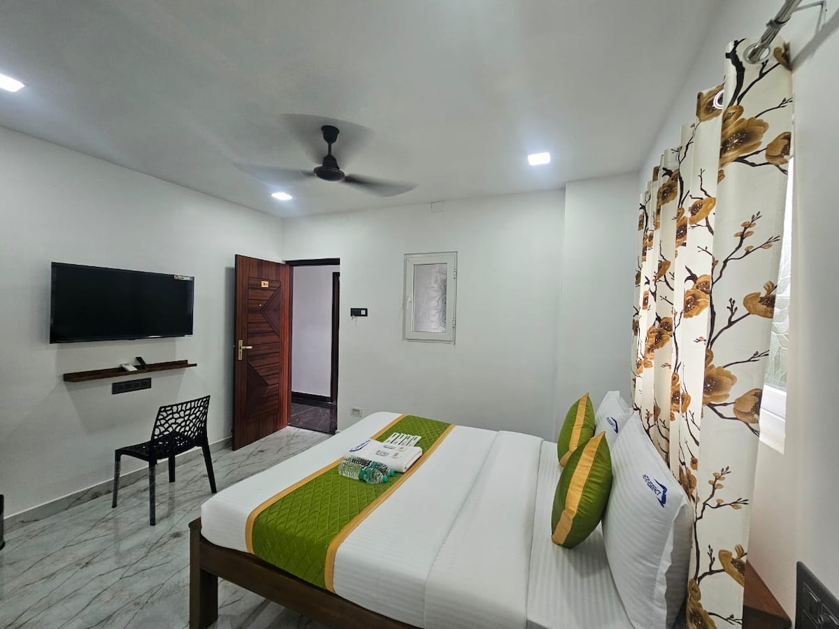 A cozy stay in the heart of Chennai in Nungambakkam. This 200 sq.ft room includes a comfy double bed, private bathroom, work desk, and a compact kitchenette. Located near Apollo Hospital, the American Embassy, Khadar Nawaz Khan Road, and T. Nagar, it's perfect for business travelers, medical visitors, and shoppers alike. Enjoy comfort, convenience, and easy access to Chennai’s key landmarks.