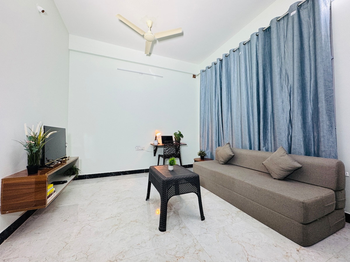 Welcome to your 4,000 sq. ft. villa in Palavakkam! This two-bedroom retreat is just a short stroll from the beach and relax on the ocean-view terrace. Inside, the villa offers generous space for families, a fully equipped kitchen with microwave, extra-large fridge, cooking utensils and 24/7 solar-powered hot water. Outside, the terrace provides sweeping ocean views, perfect for sunrise coffee or evening relaxation. Private car parking makes your stay even more convenient.