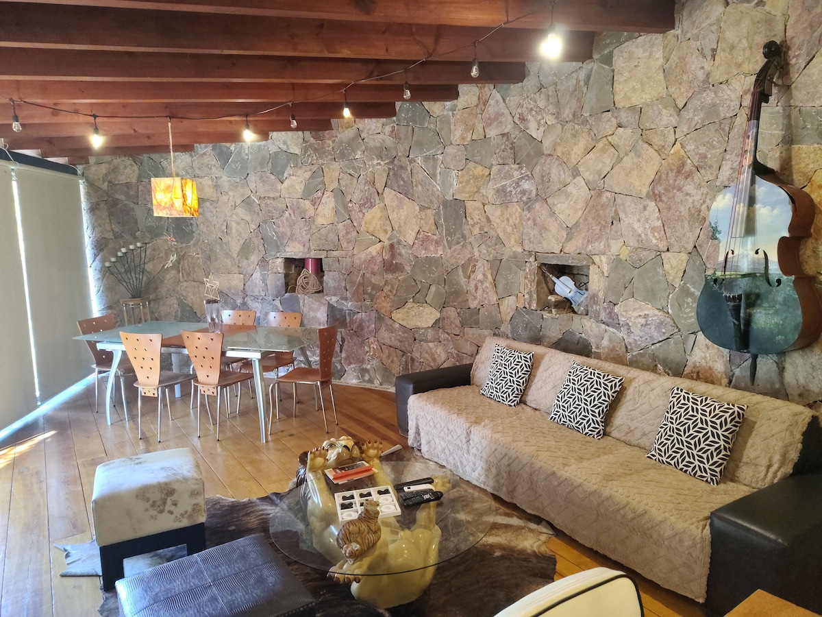 Este alojamiento único tiene mucho espacio para que disfrutes con los tuyos en medio de la naturaleza , con "confort", palapa con horno de leña, fogata, chimenea al aire libre con una vista maravillosa al bosque. Loft elegante y acogedor, con todos los servicios incluidos , pero al mismo tiempo tranquilidad y relajación. !Ven, respira y disfruta lo natural!