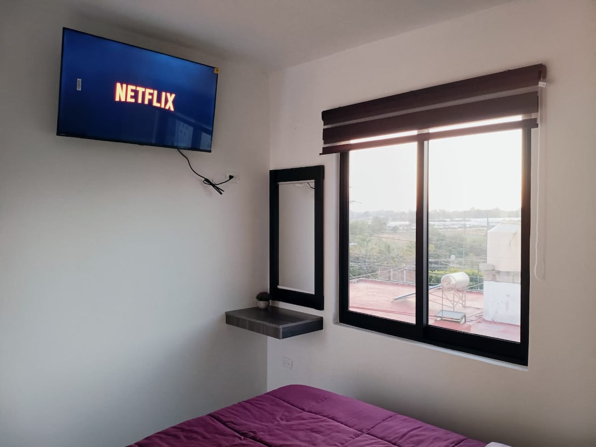 Acceso cómodo y seguro: primero se entra por el portón general, luego por la puerta de recepción y finalmente al mini departamento privado. El espacio es totalmente tuyo: cuenta con recámara, baño completo y cocineta equipada para preparar lo básico. Incluye pantalla con convertidor (Netflix, YouTube, etc.), espejo grande, perchero y mesa práctica. Lo mejor: estacionamiento privado incluido y una ubicación muy práctica, a pocos minutos del centro de la ciudad.