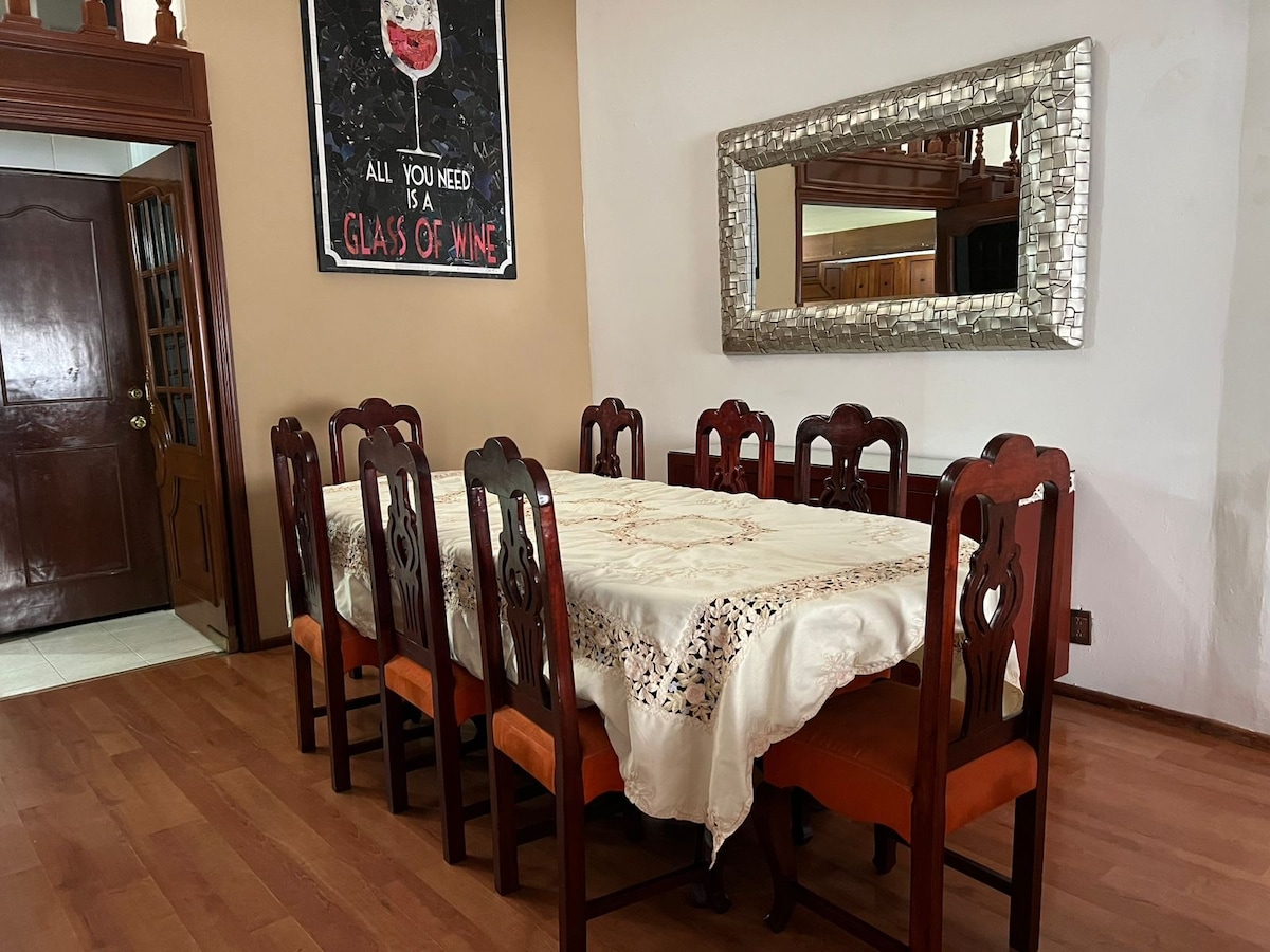 Casa amplia y confortable de facil acceso a 5 minutos de ciudad universitaria y a 10 minutos del periferico, con cochera privada para dos carros chicos o suvs (largo 5m y ancho 4.5 m ) ideal para familias en una zona muy tranquila con jardin