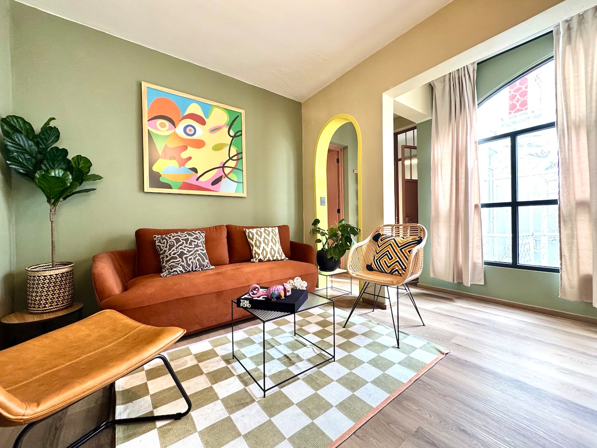 This gorgeous home features a bright and open interior with colorful furnishings and stylish accents. Notice the Mexican tiles in the kitchen. Admire the expressive artwork, and lounge on the vibrant blue sofa in the living area. The home's central location provides access to many of Puebla's historic sites. Walk to the iconic Puente de Bubas, roam the Biblioteca Palafoxiana, and explore the museums all while stopping to experience the fantastic local foods and drinks.