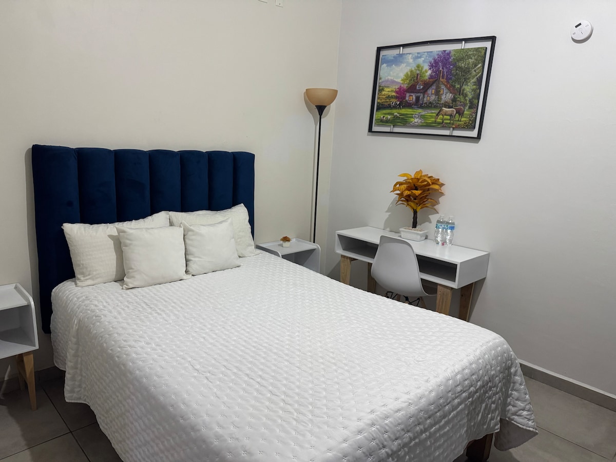 ★"The place exceeded every expectation, it was clean and stylish" ✭ Free welcome relaxing massage (15 mins) → Walk Score 85 (Groceries, restaurants, cafés, bars, museums) → 1 minute walking to Guadalajara's downtown → Fulled equipped + stocked kitchen → Safe neighborhood → USB charging port in walls Soft Double bed. two Hypoallergenic pillows. Remember, your home away from home (: 40 min drive to Guadalajara Airport