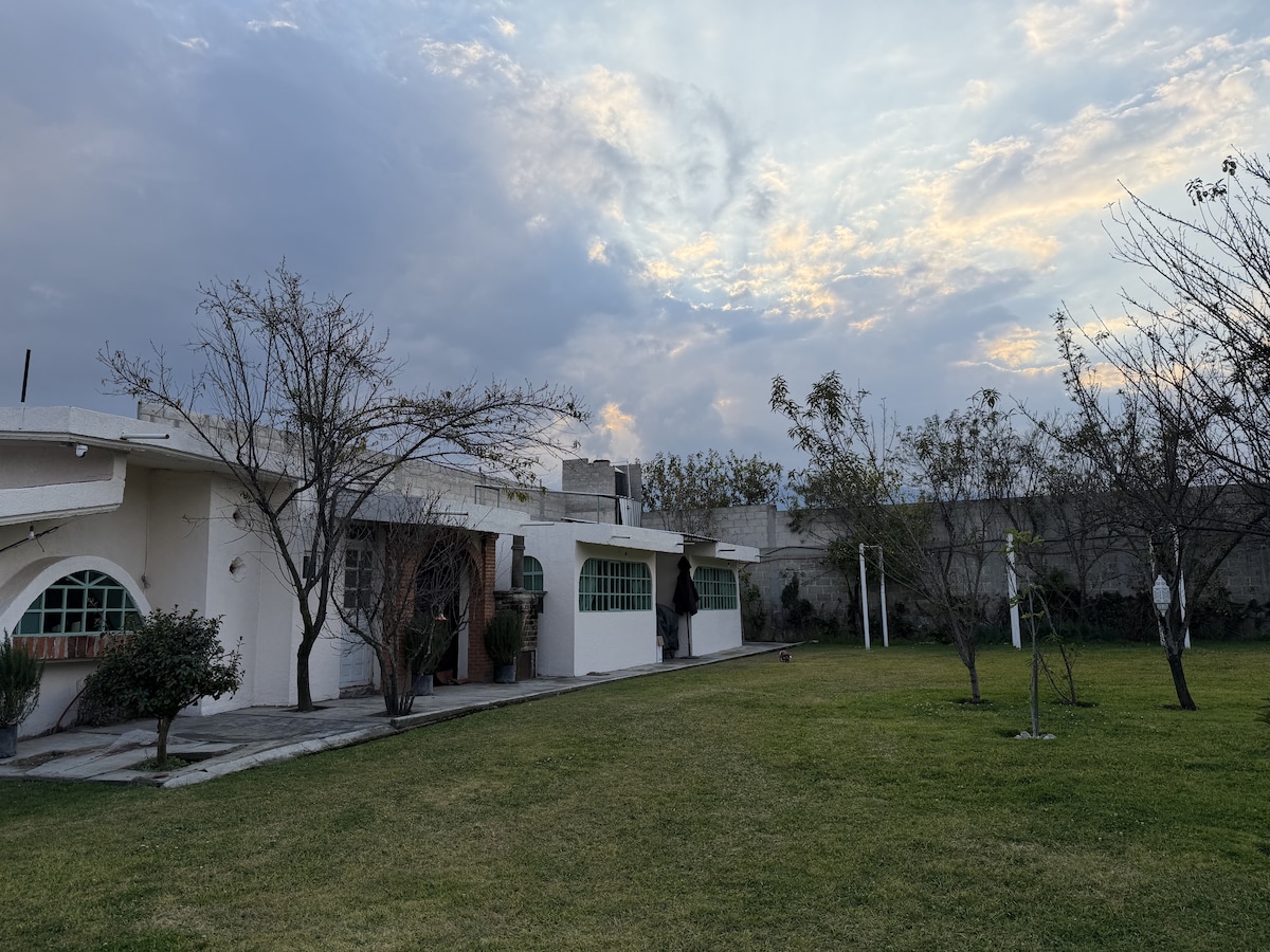 ¡Escápate con tu familia a Atlixco y vive una experiencia única! Disfruten del clima perfecto, alberca rodeada de árboles, asados en parrilla argentina y tardes de juegos con billar y ping pong. Por la noche, fogata bajo un cielo lleno de estrellas. Excelente ubicación a minutos del centro , mercado, Plaza Moraleda, Parque Xtremo. Con costo extra, una cocinera local puede preparar platillos típicos y tortillas hechas a mano. Comunidad segura, internet rápido. Momentos que no se olvidan.