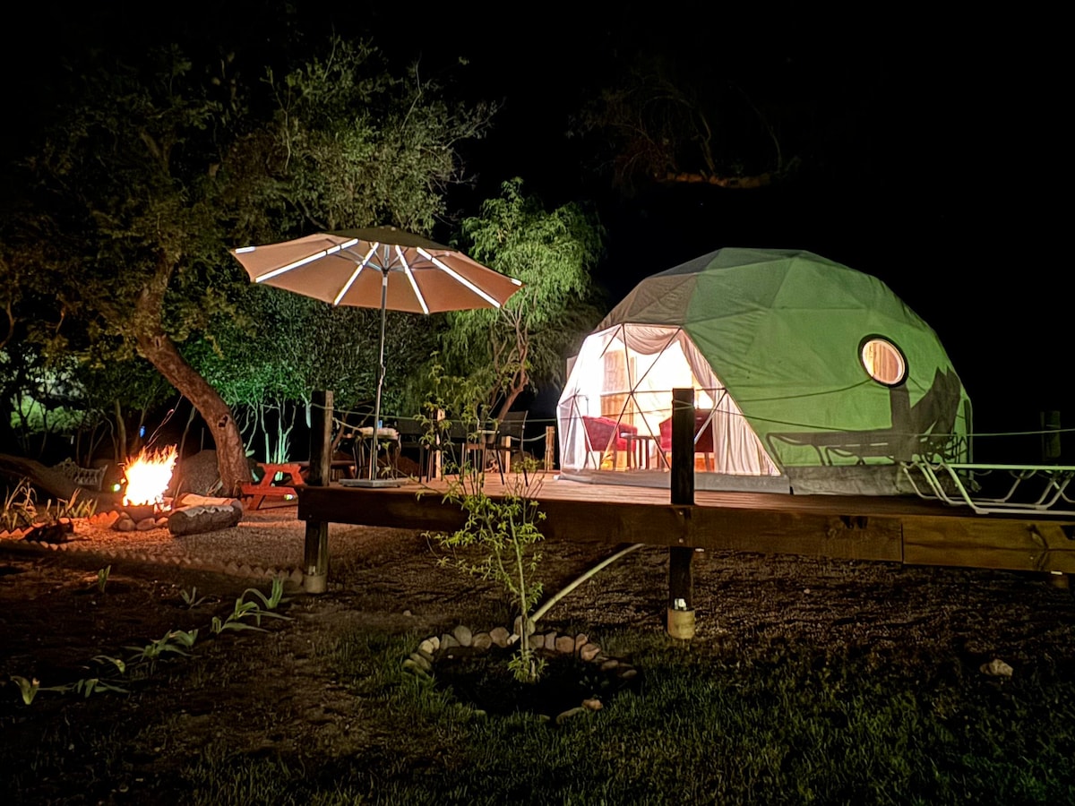 Reconnect with nature at this unforgettable escape. Fall asleep under the Milky Way in the largest dark sky reserve in the WORLD! Wake up to stunning mountain views. Solar-Powered Luxury Glamping Dome with spa-inspired interior bathroom, heating/air conditioning, shaded outdoor kitchen & dining area, touch-on fire pit & chaise lounges with a telescope for stargazing. ~30 Minutes from Big Bend National Park entrance. Enjoy the peace & quiet.