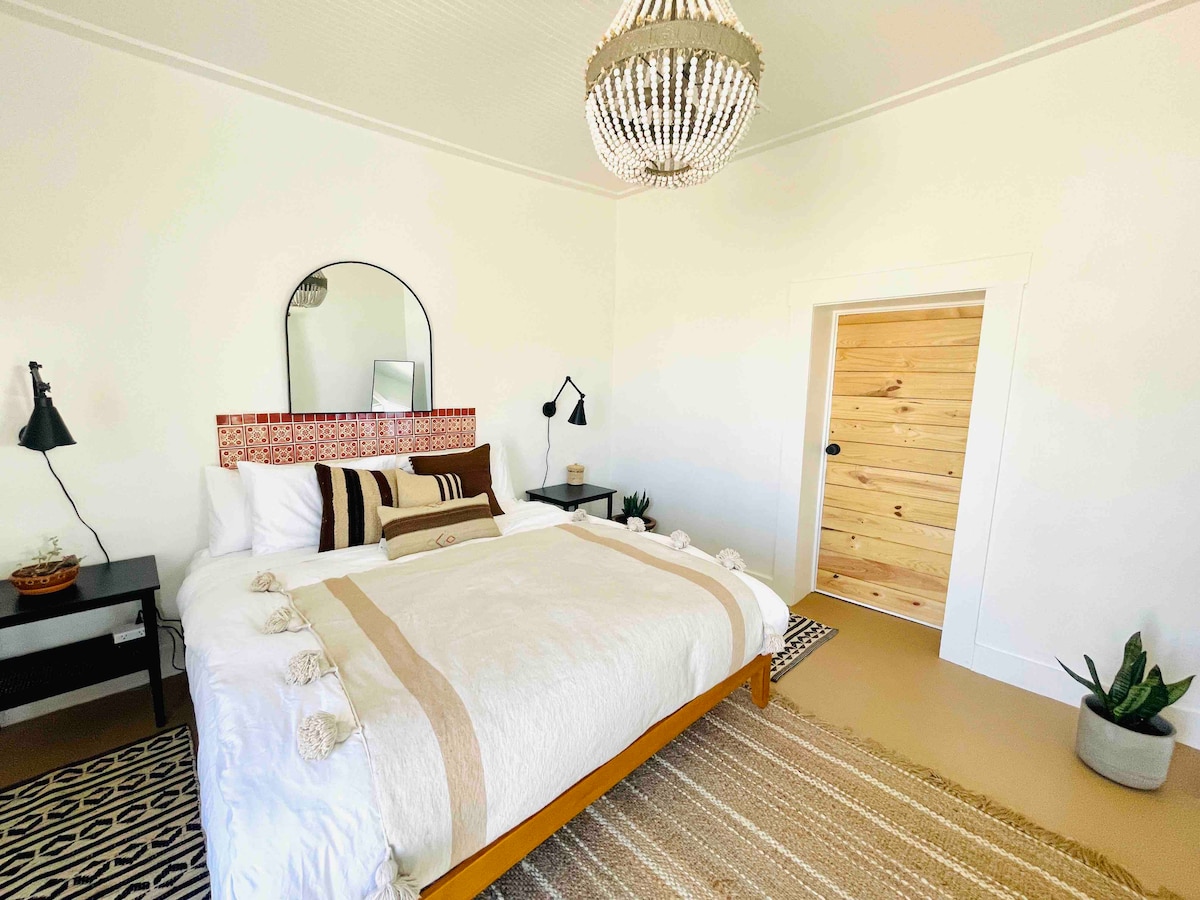 BOHEMIO is a beautiful, boutique adobe lodge for the solo traveler, family, or groups of up to 10+. Inspired by the novels of Kerouac, the open road, starry skies, and wine-fueled fireside chats, Bohemio offers a unique combination of rustic charm, architectural authenticity, and minimalist elegance. Centrally located just a few blocks from the Saint George, guests can walk to galleries, shops, bars and restaurants while still enjoying the quiet privacy and feel of a West Texan hacienda.
