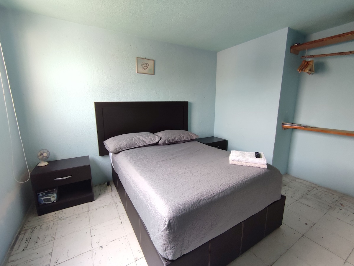 Visit Puebla staying in this quiet space in one of the best locations in the city. Spacious, independent, with private bathroom, walk-in closet, desk, dining space, stove, sink, microwave oven, refrigerator, WiFi, TV and fan. Close to Angelópolis Shopping Center, Estrella de Puebla, Museums, Art Park, Universities, Hospitals, Shopping, entertainment and restaurants. The neighborhood is semi-closed, quiet and guarded.